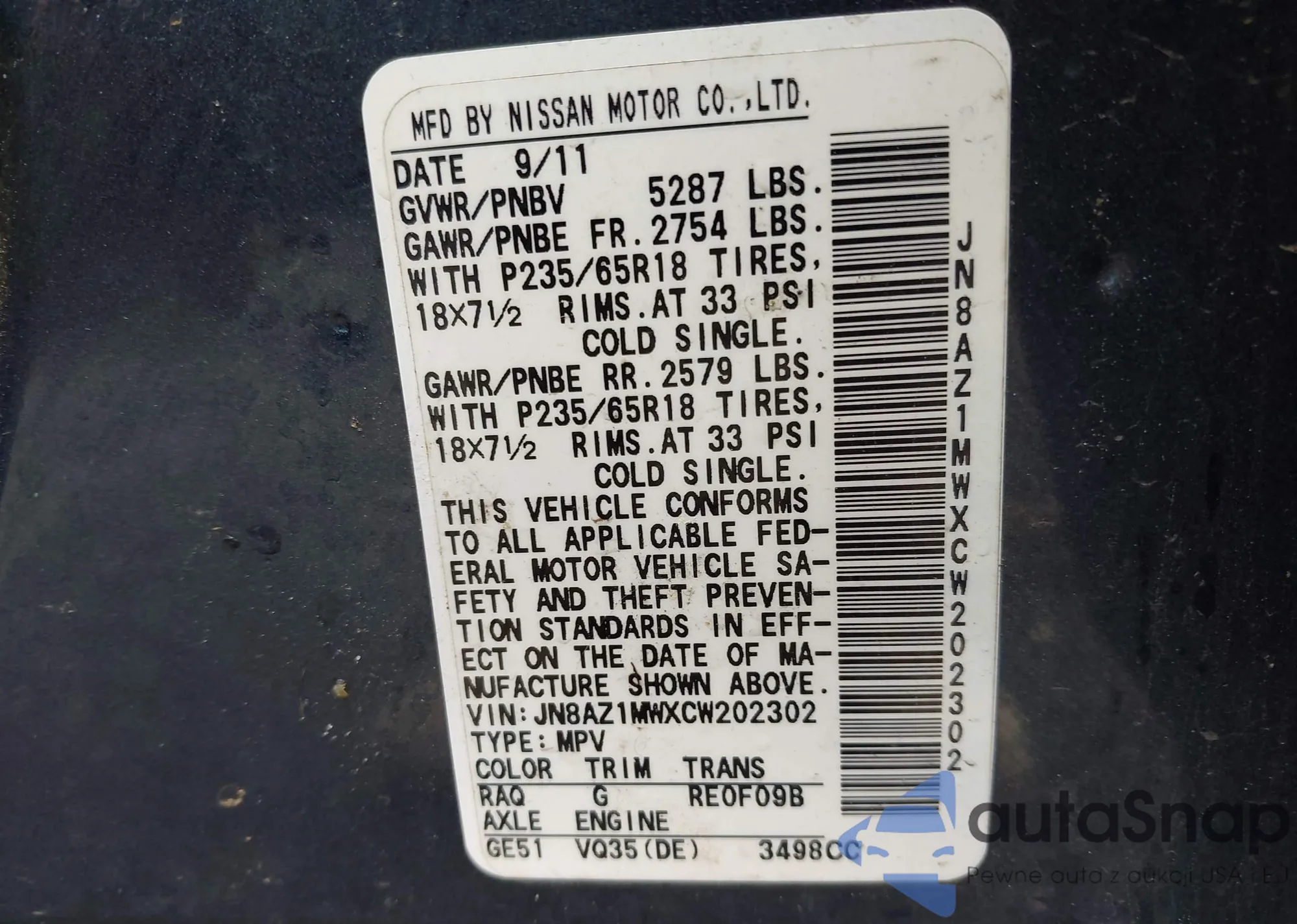 • VIN JN8AZ1MWXCW202302