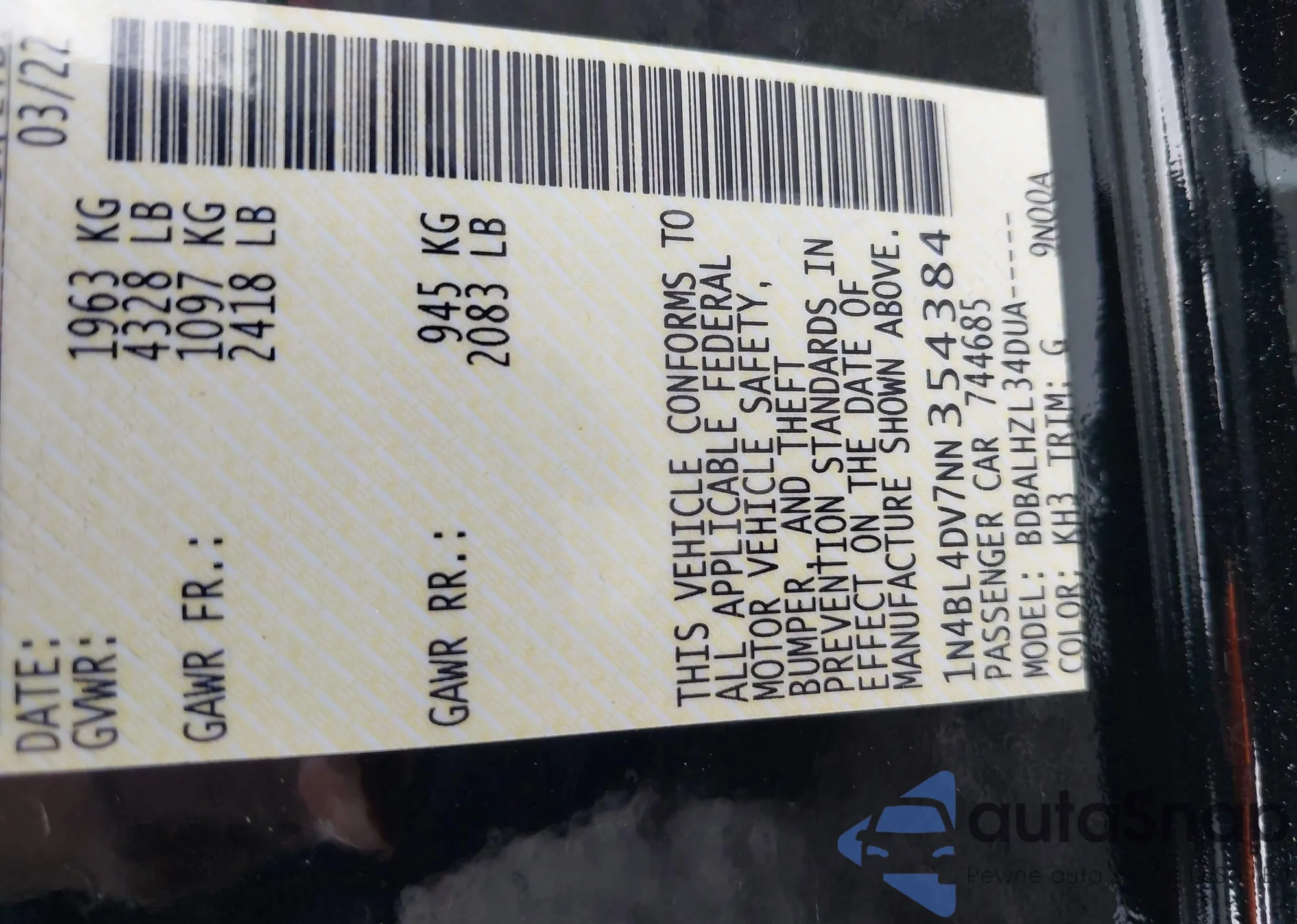 • VIN 1N4BL4DV7NN354384