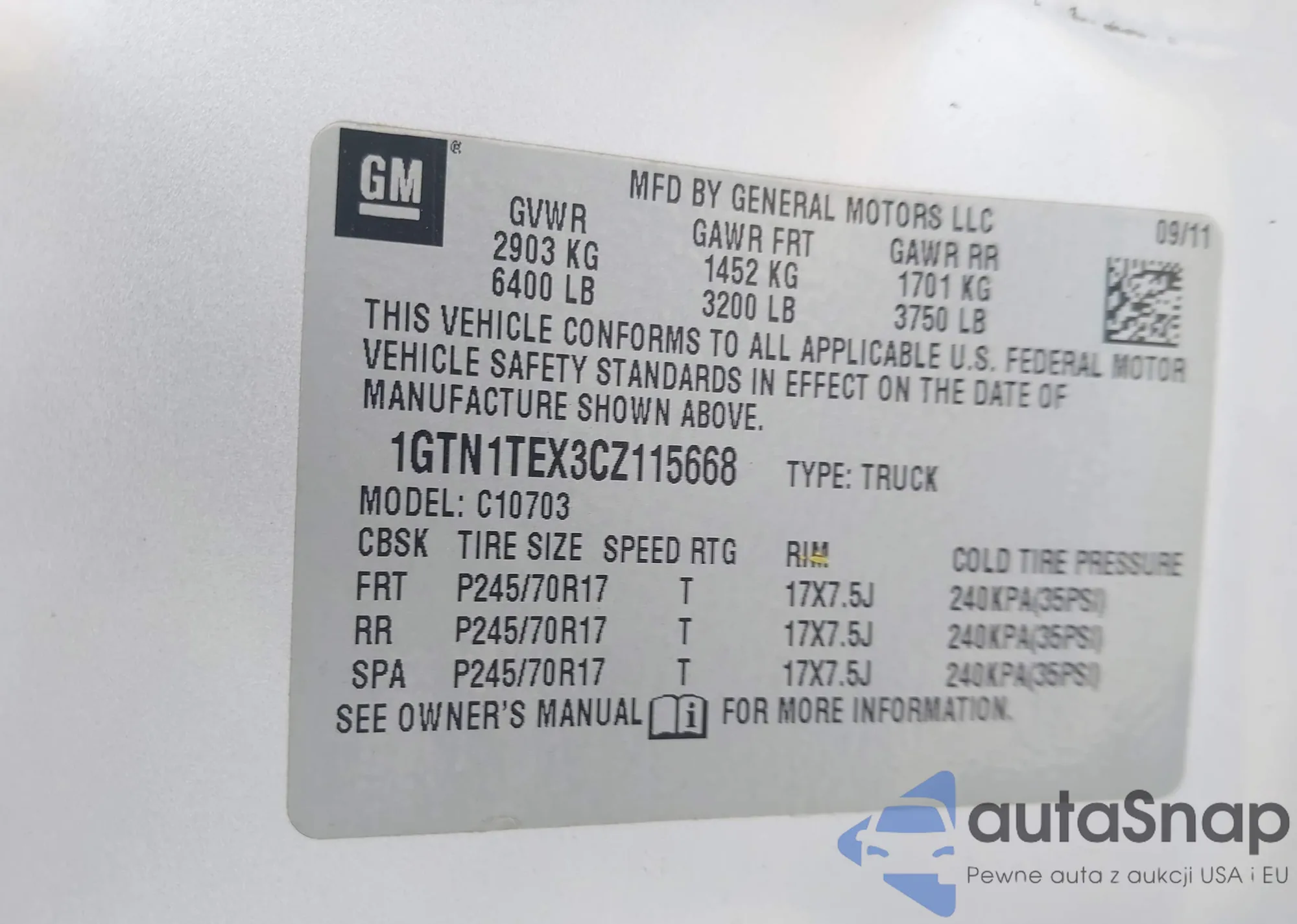 • VIN 1GTN1TEX3CZ115668