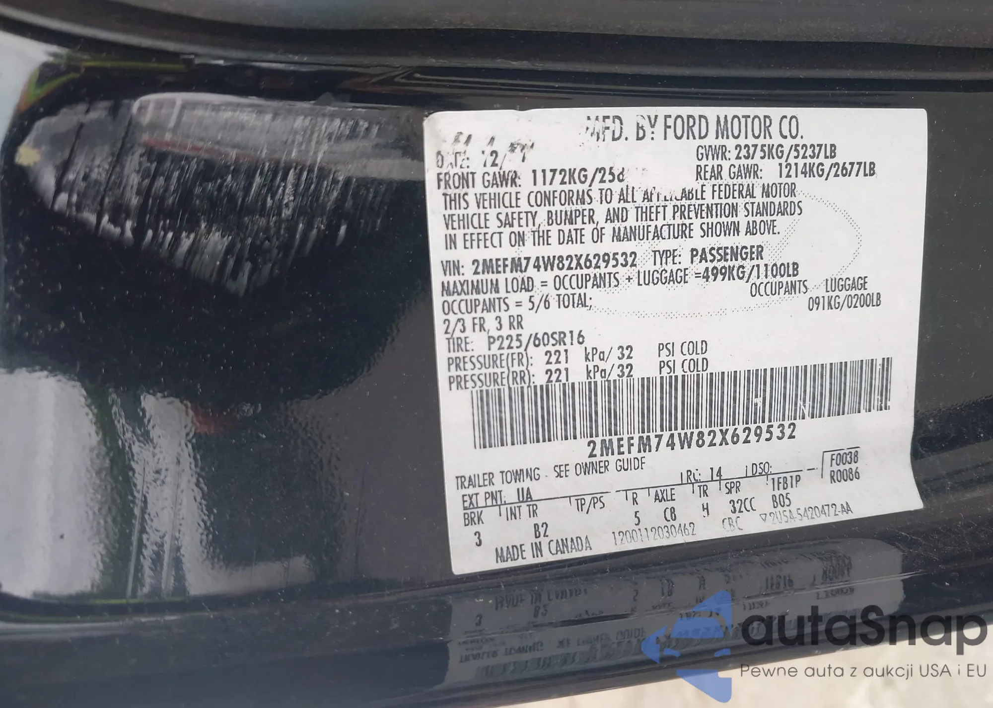 • VIN 3FAHP0HA6BR104772