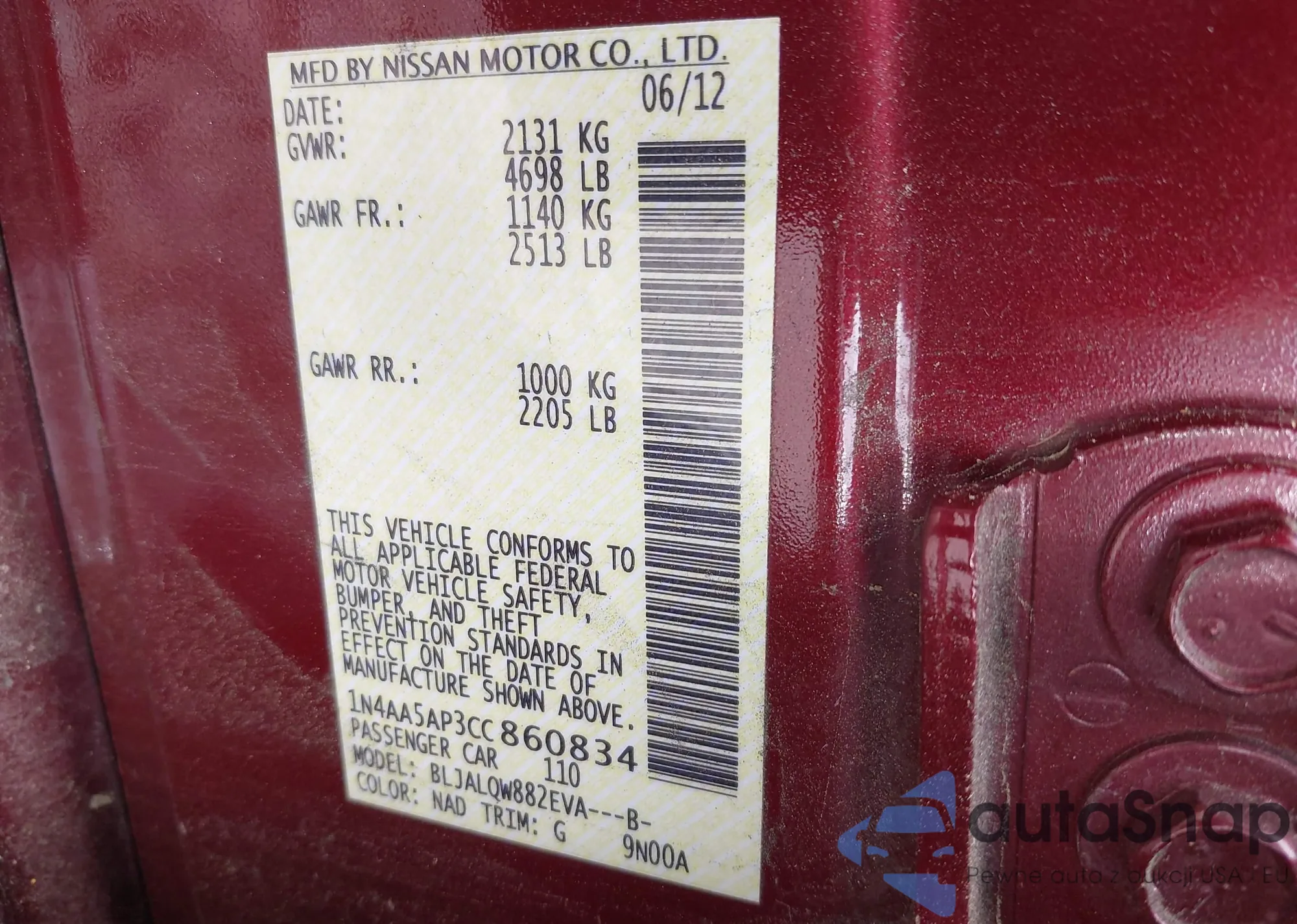 LOT: 42429509 VIN: 1N4AA5AP3CC860834