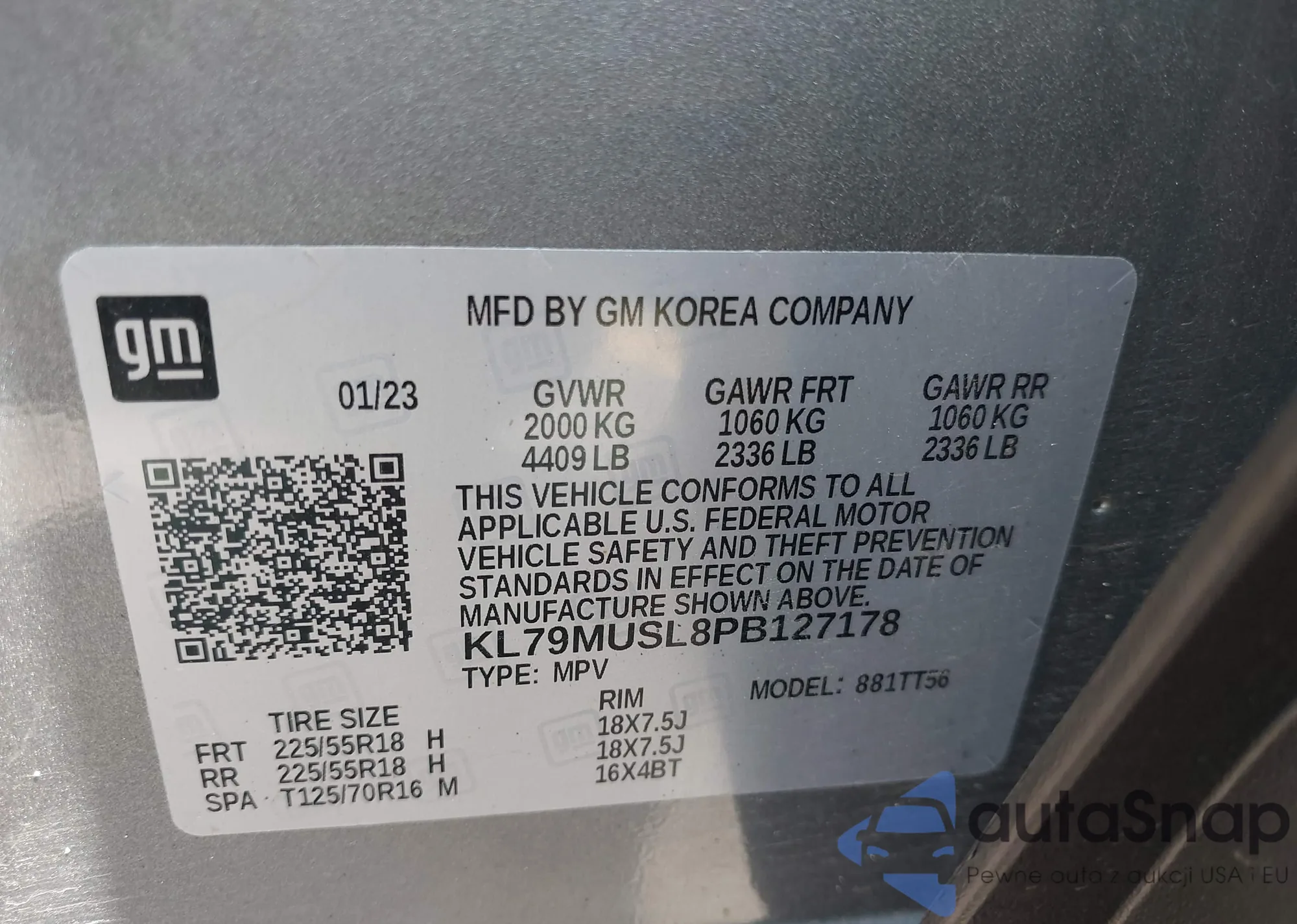 • VIN KL79MUSL8PB127178
