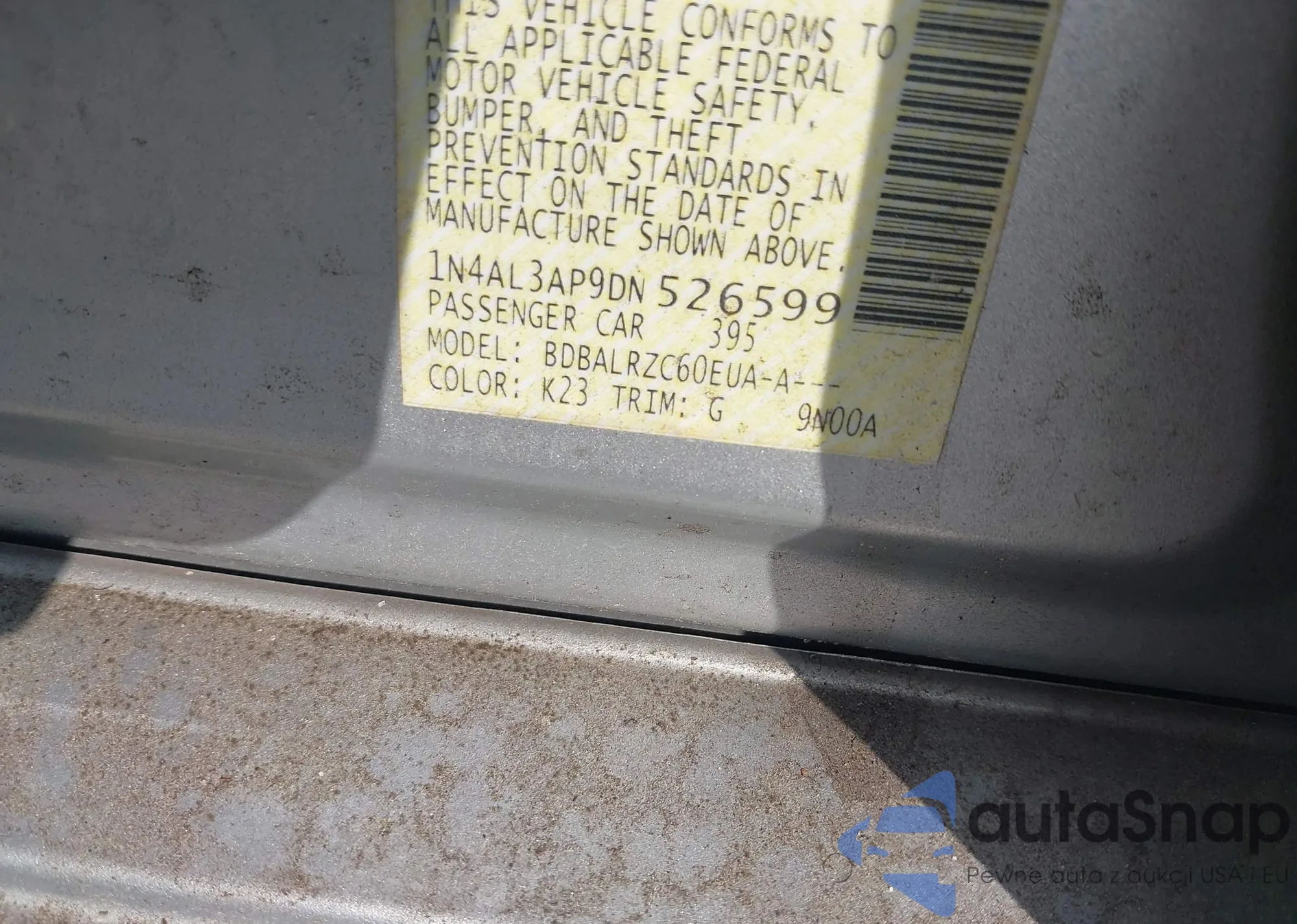LOT: 42260304 VIN: 1N4AL3AP9DN526599