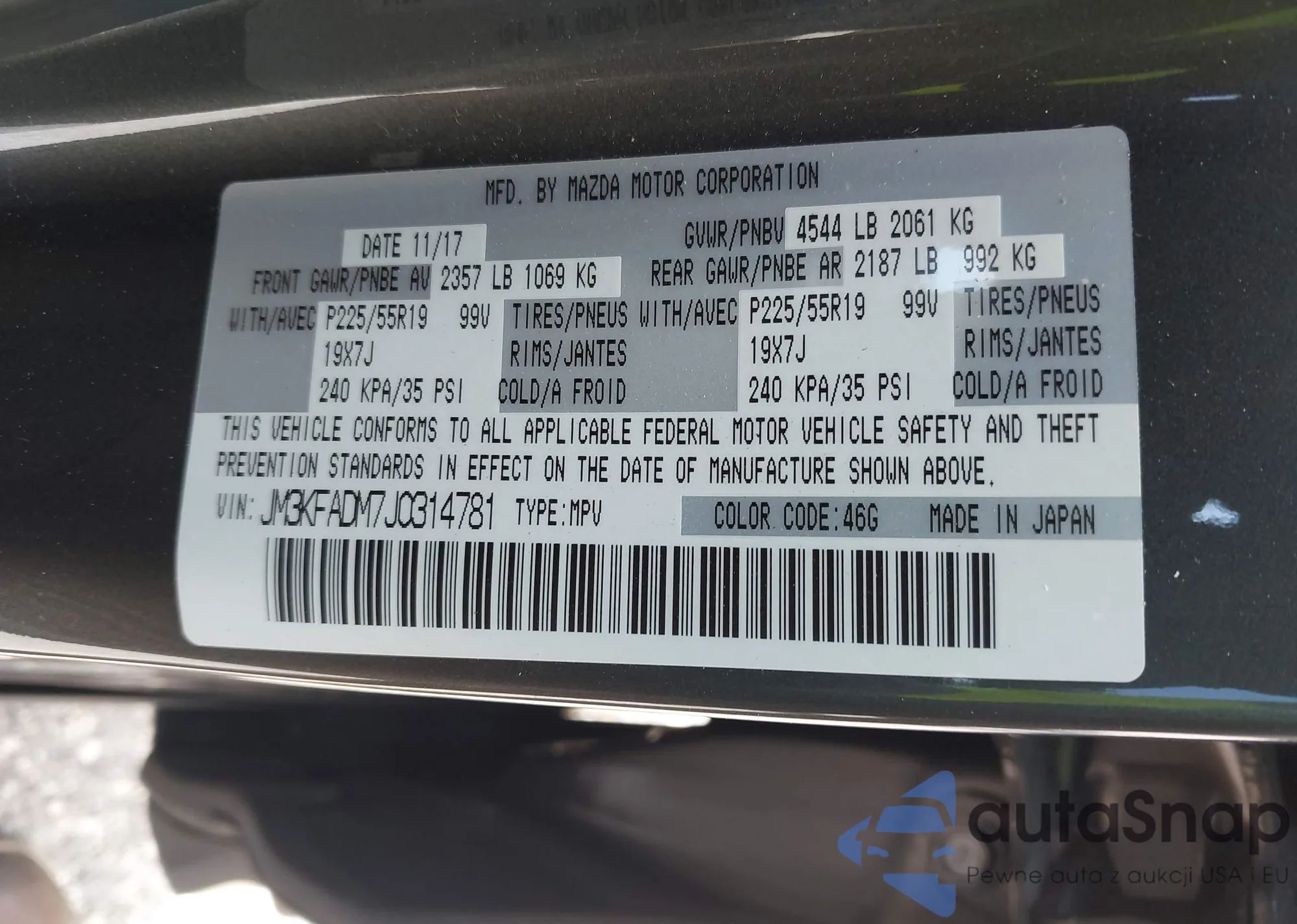 LOT: 42687565 VIN: JM3KFADM7J0314781