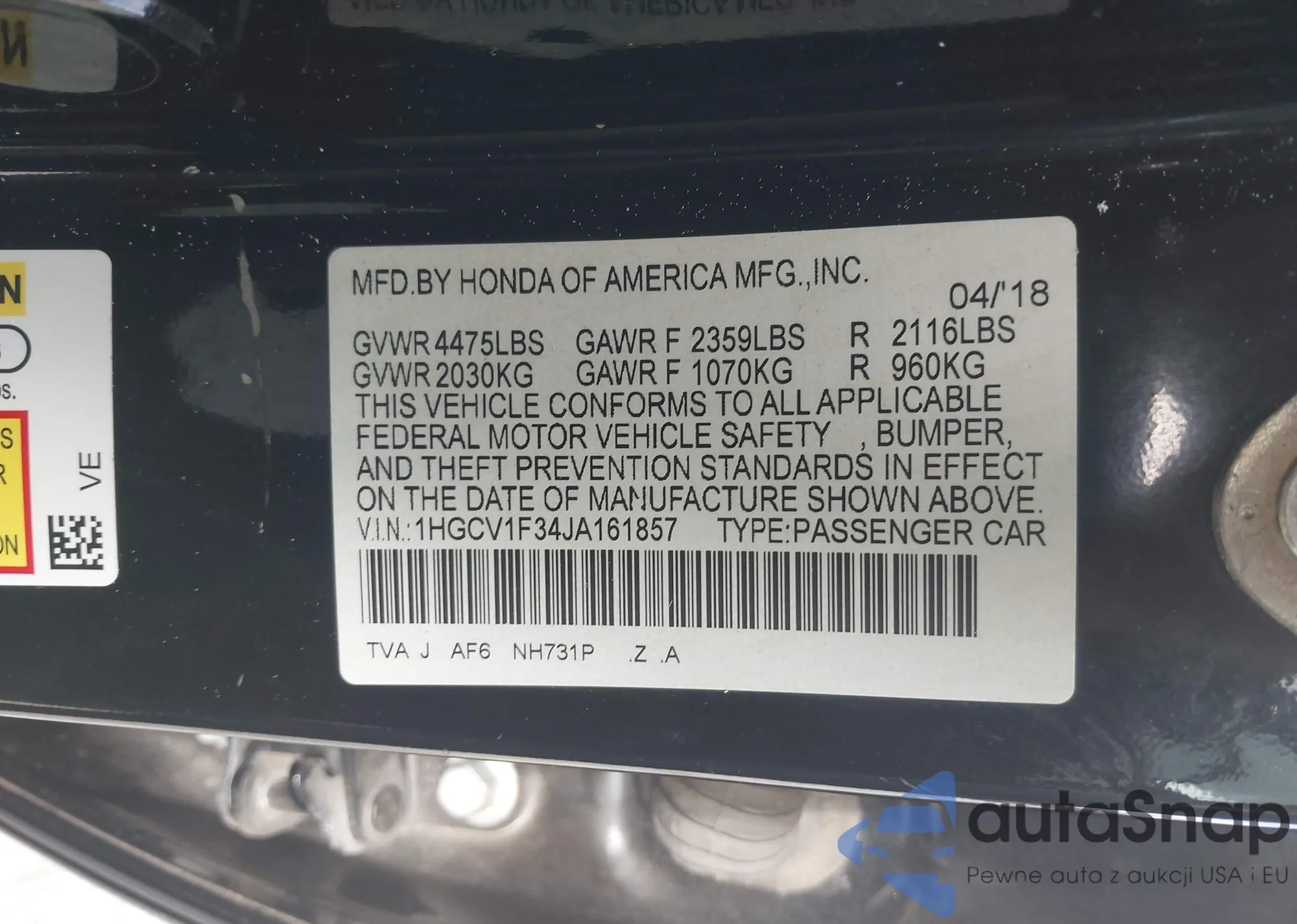 • VIN 1HGCV1F34JA161857