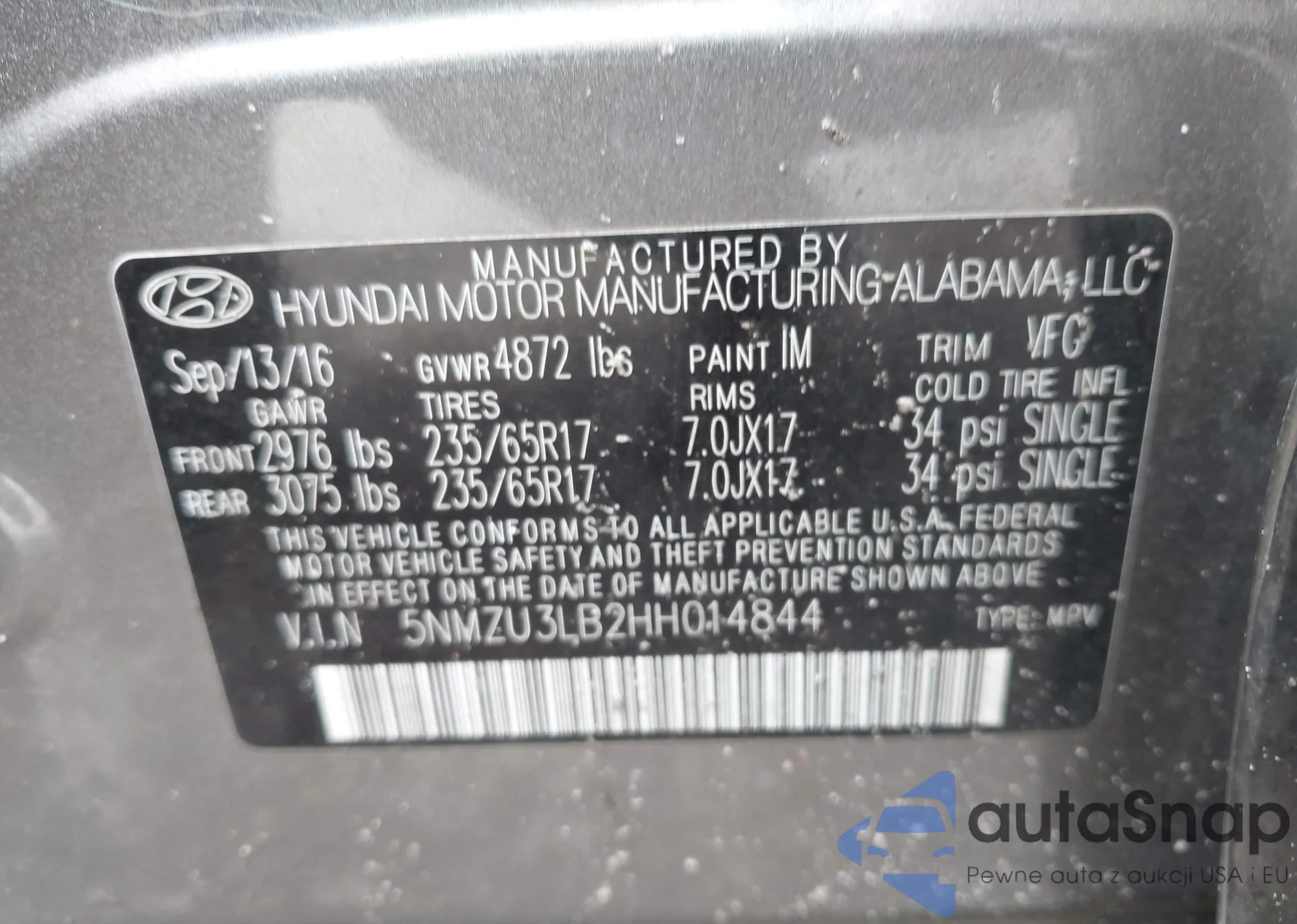 • VIN 5NMZU3LB2HH014844