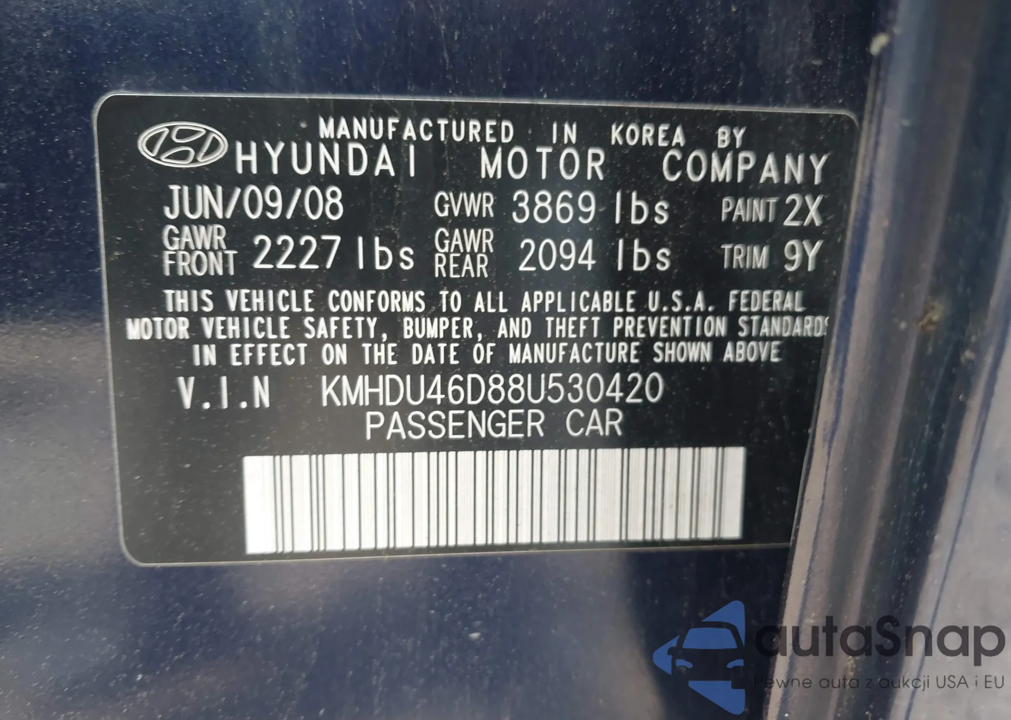 LOT: 42522958 VIN: KMHDU46D88U530420