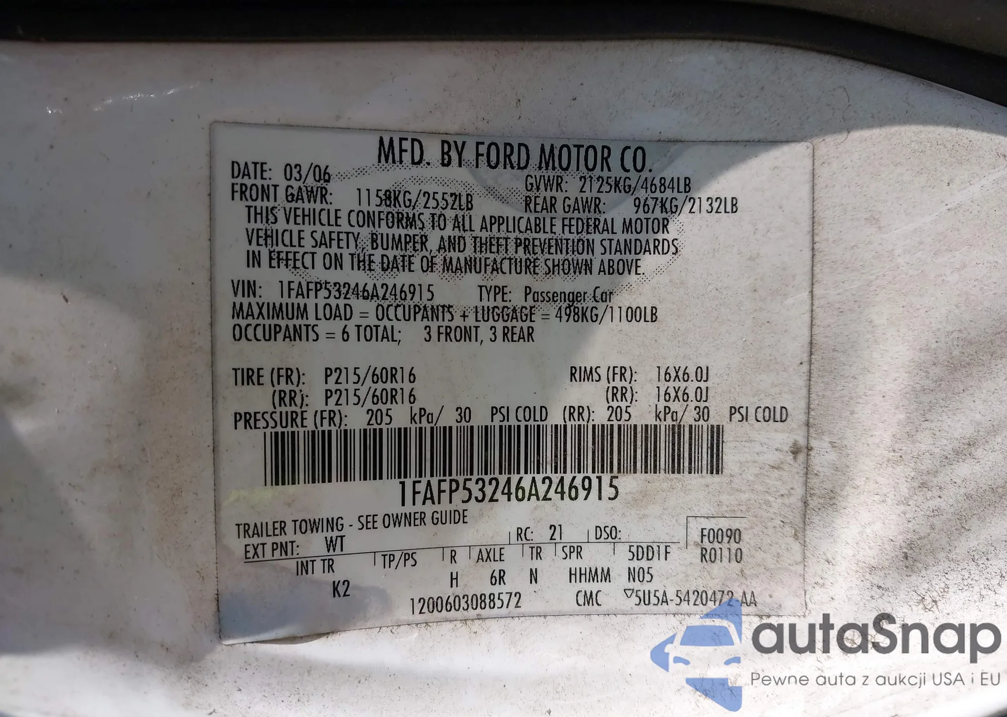 LOT: 42615684 VIN: 1FAFP53246A246915