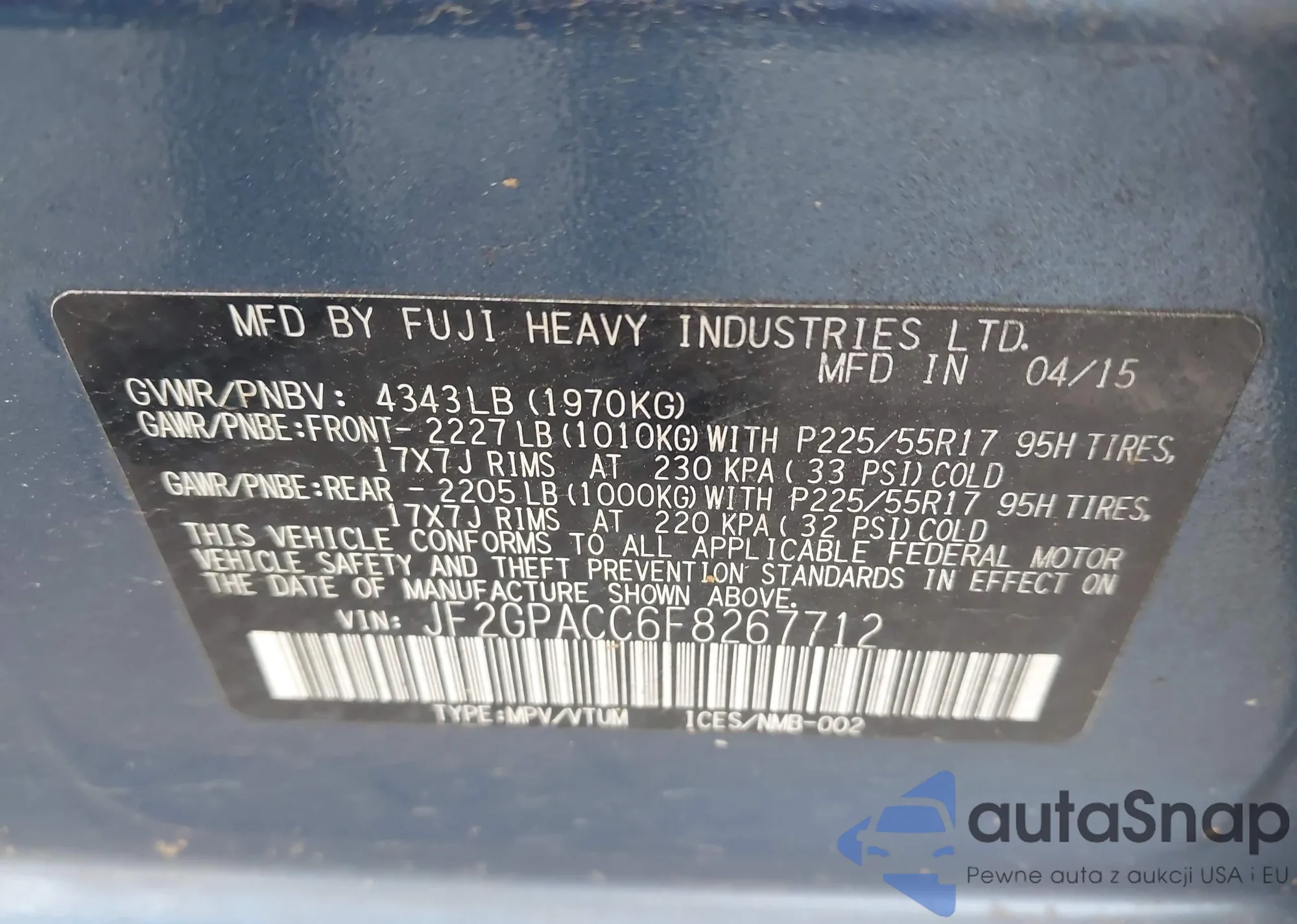 • VIN JF2GPACC6F8267712