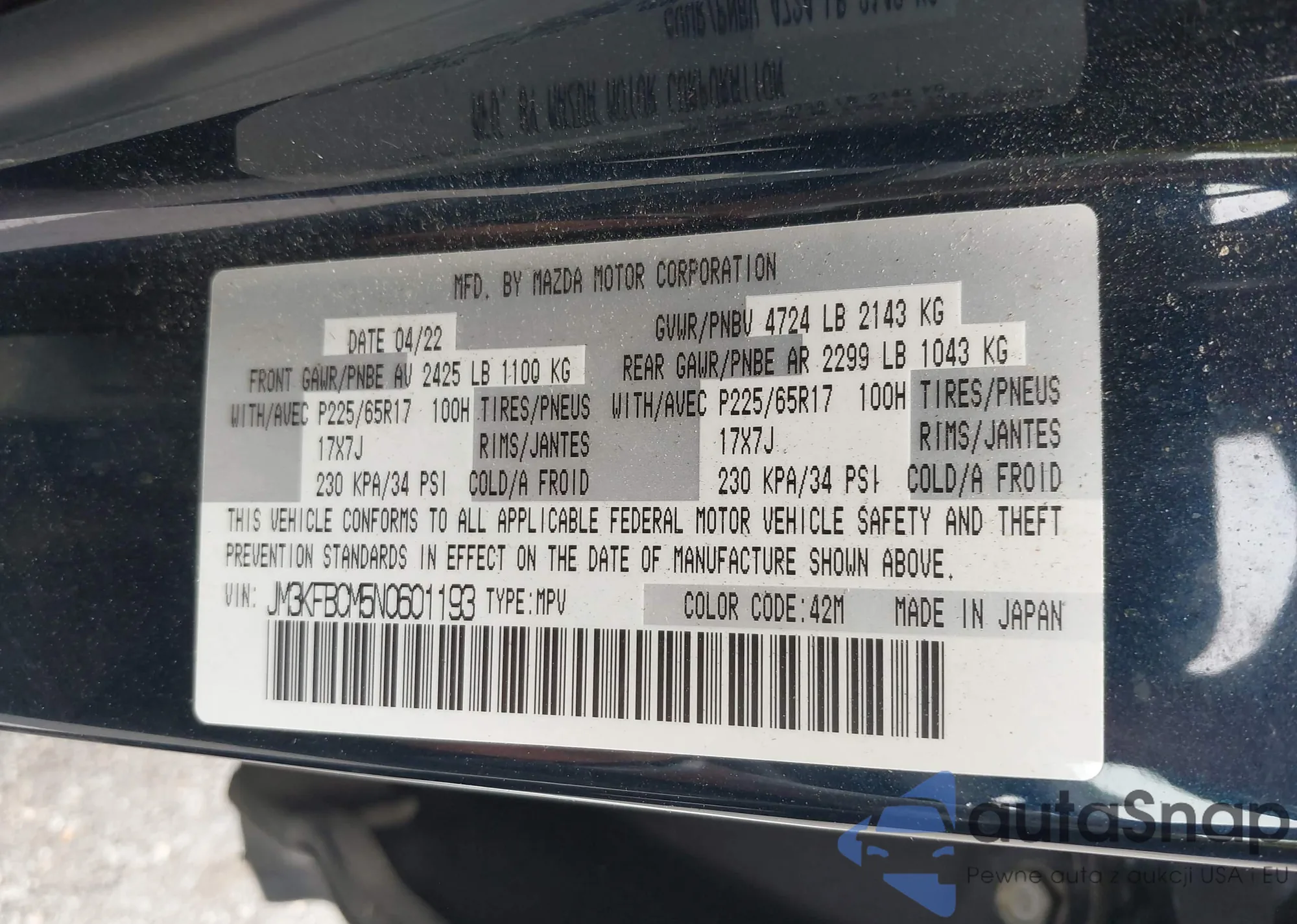 LOT: 42721266 VIN: JM3KFBCM5N0601193
