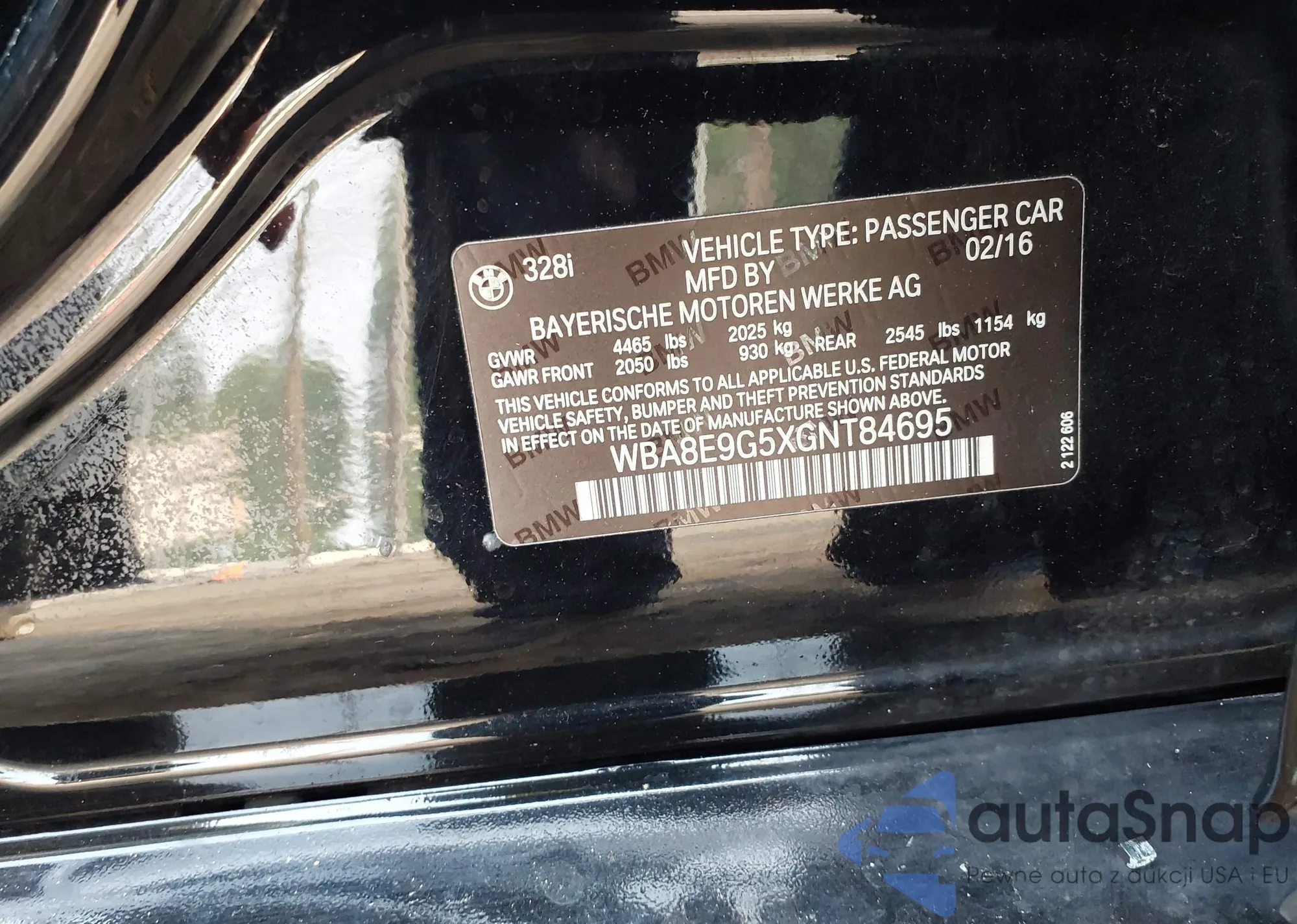 2016 BMW 328I из США, поврежденный, VIN WBA8E9G5XGNT84695
