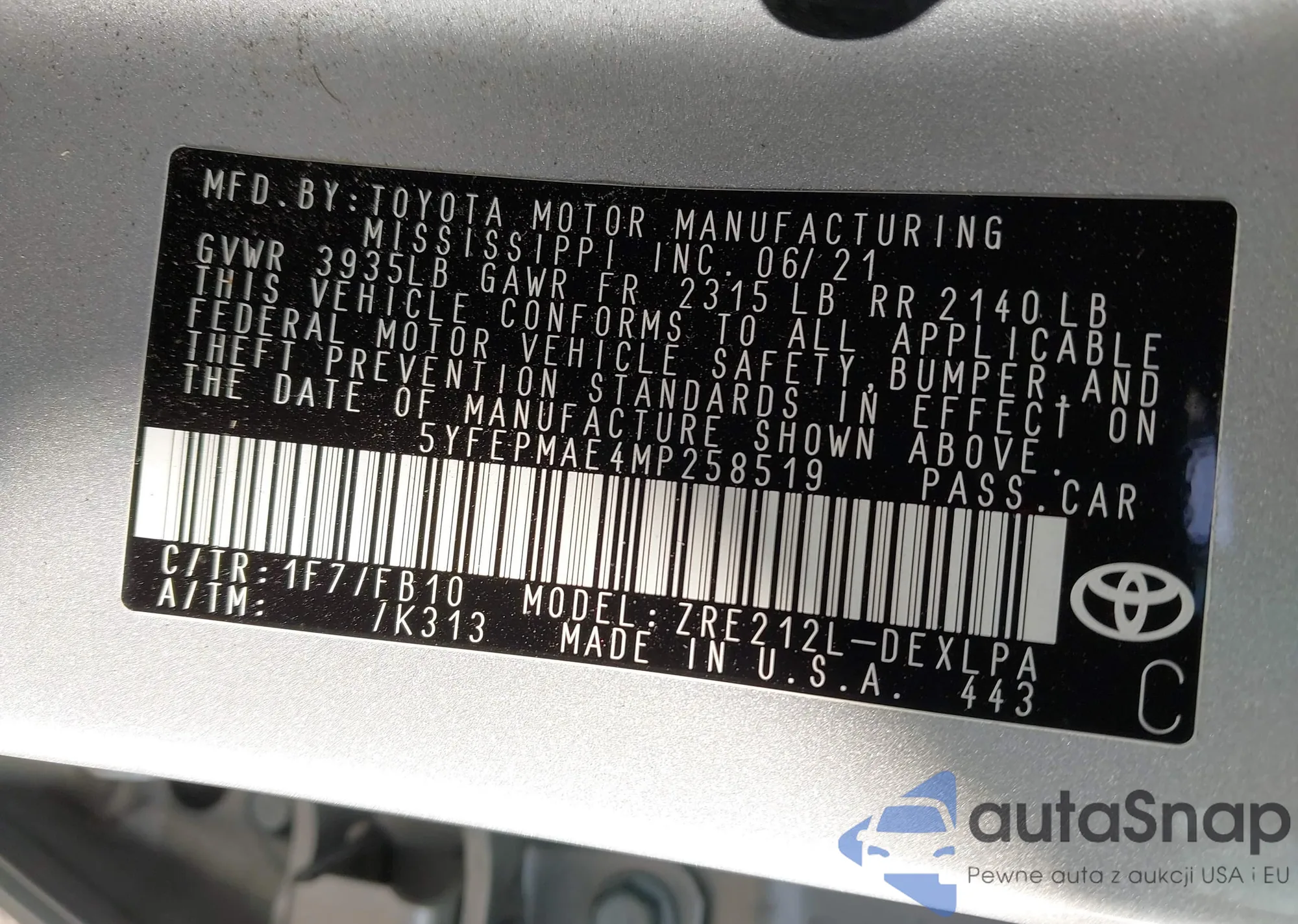 LOT: 41575832 VIN: 5YFEPMAE4MP258519