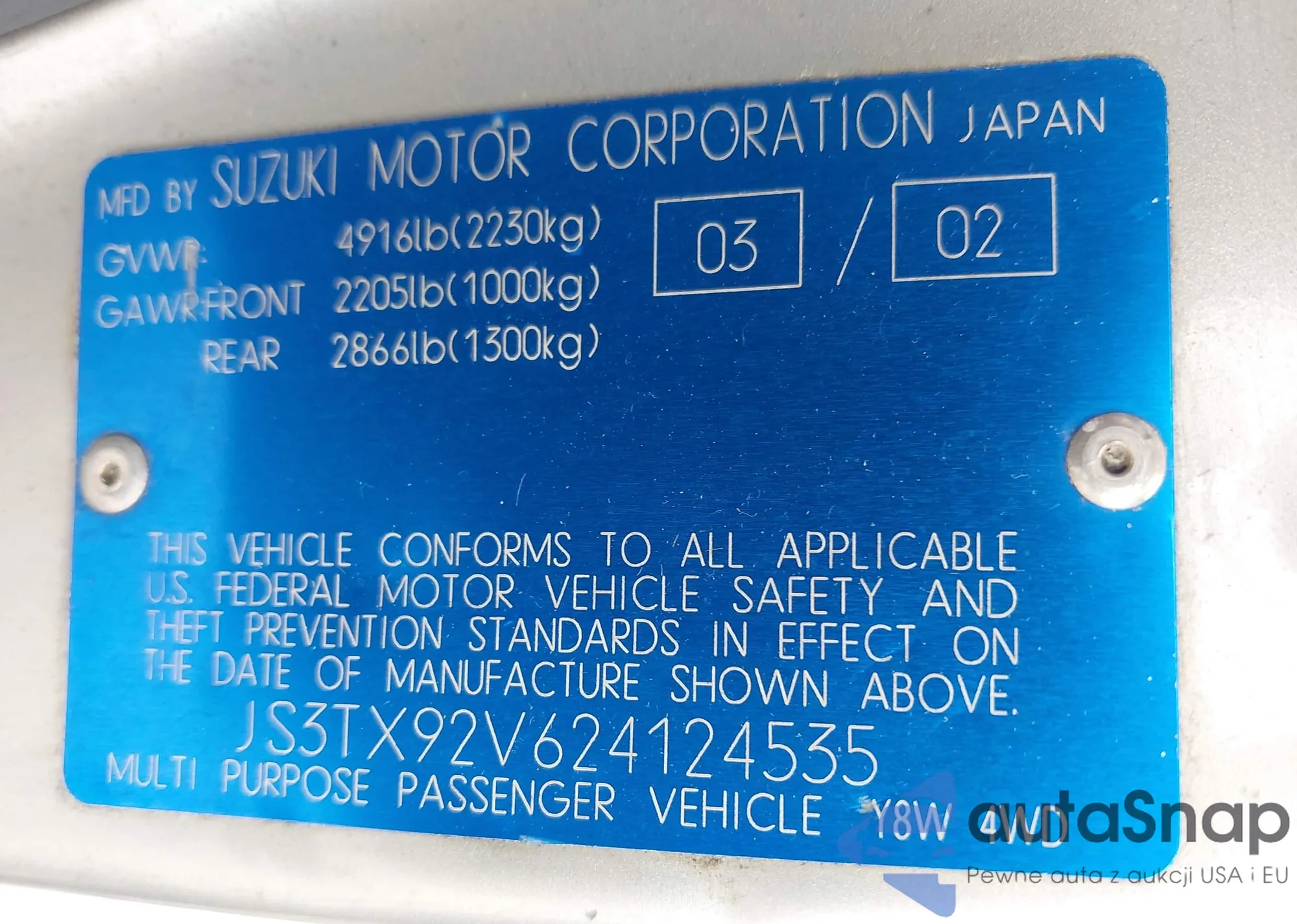 • VIN JS3TX92V624124535