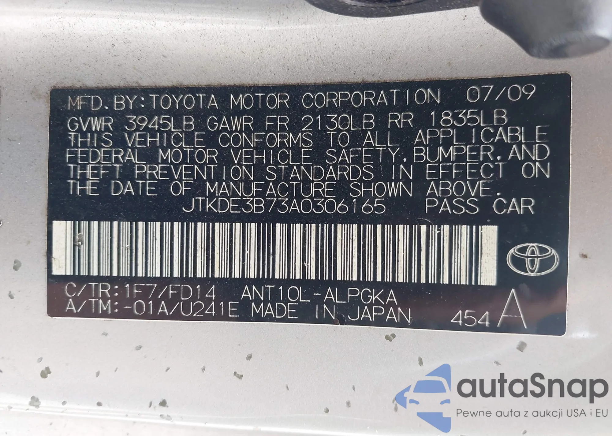 LOT: 42740690 VIN: JTDBT4K31A4077470