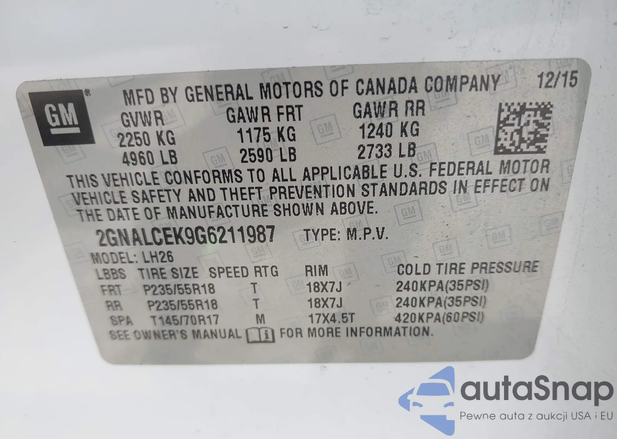 • VIN KL8CB6SA5NC015253