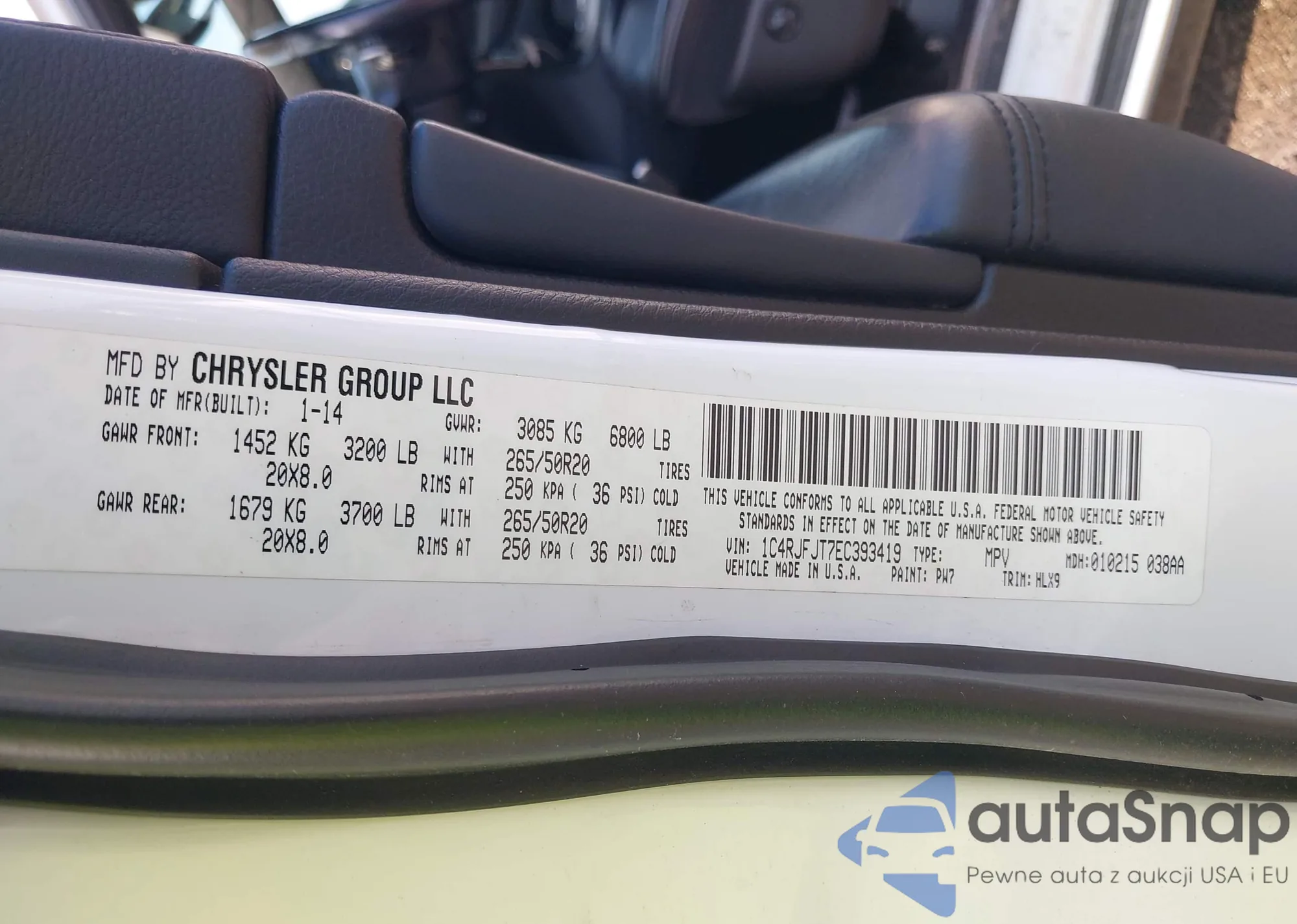 • VIN 1C4RJFJT7EC393419