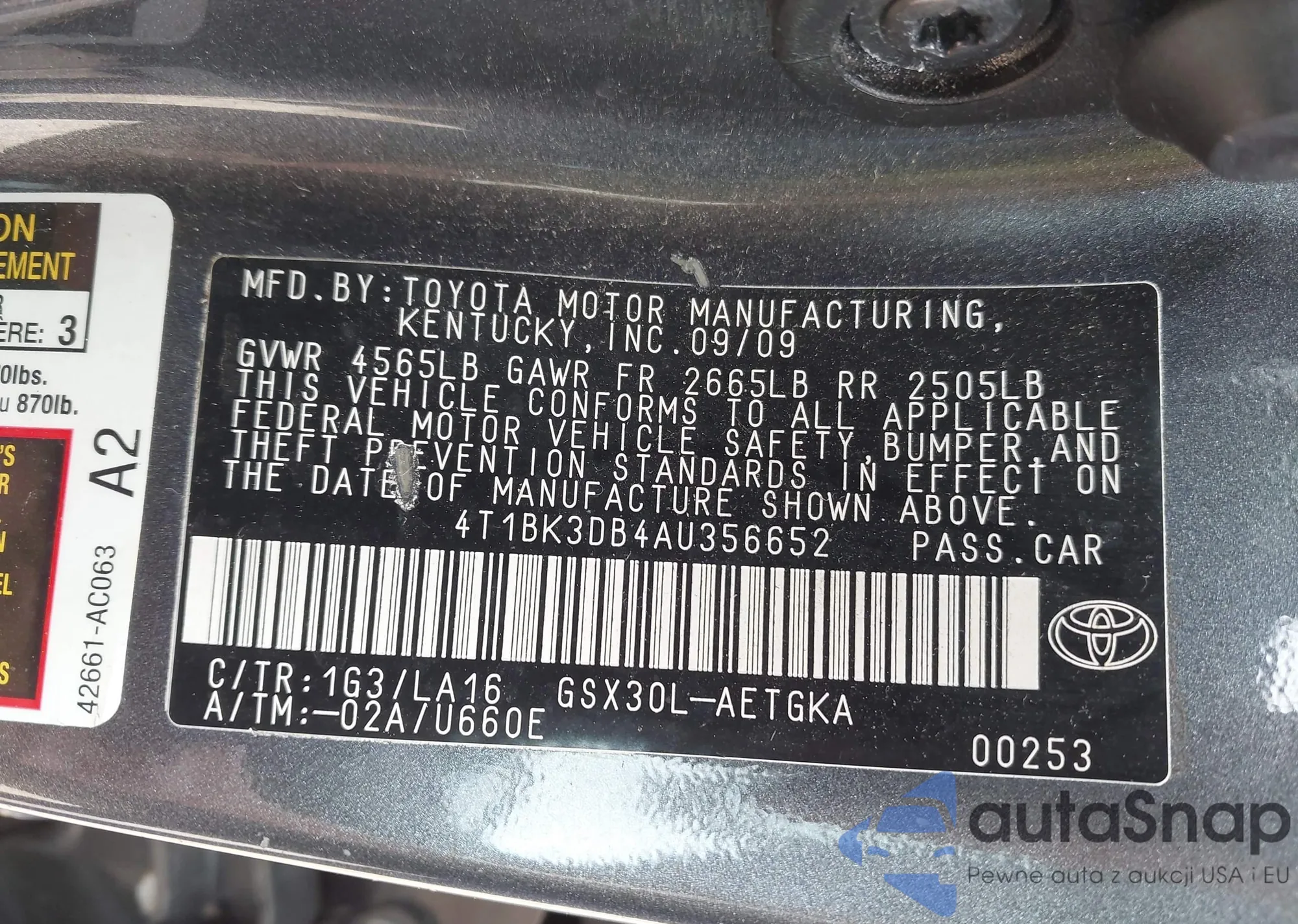 • VIN 4T1BK3DB4AU356652