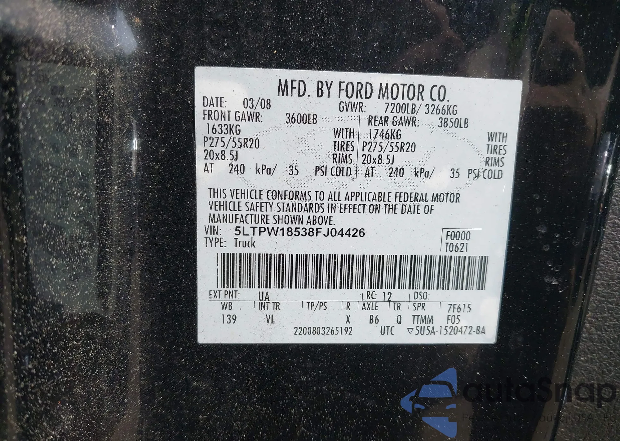 • VIN 5LTPW18538FJ04426