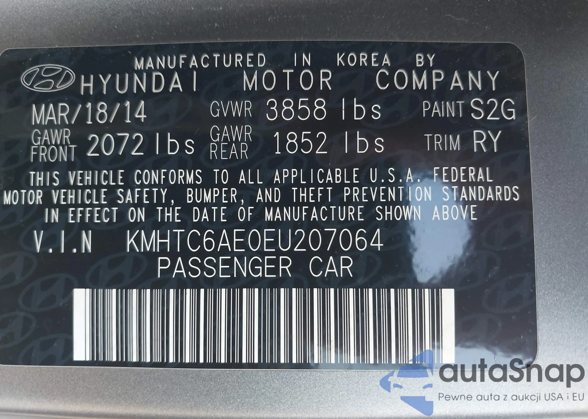 • VIN KMHTC6AE0EU207064