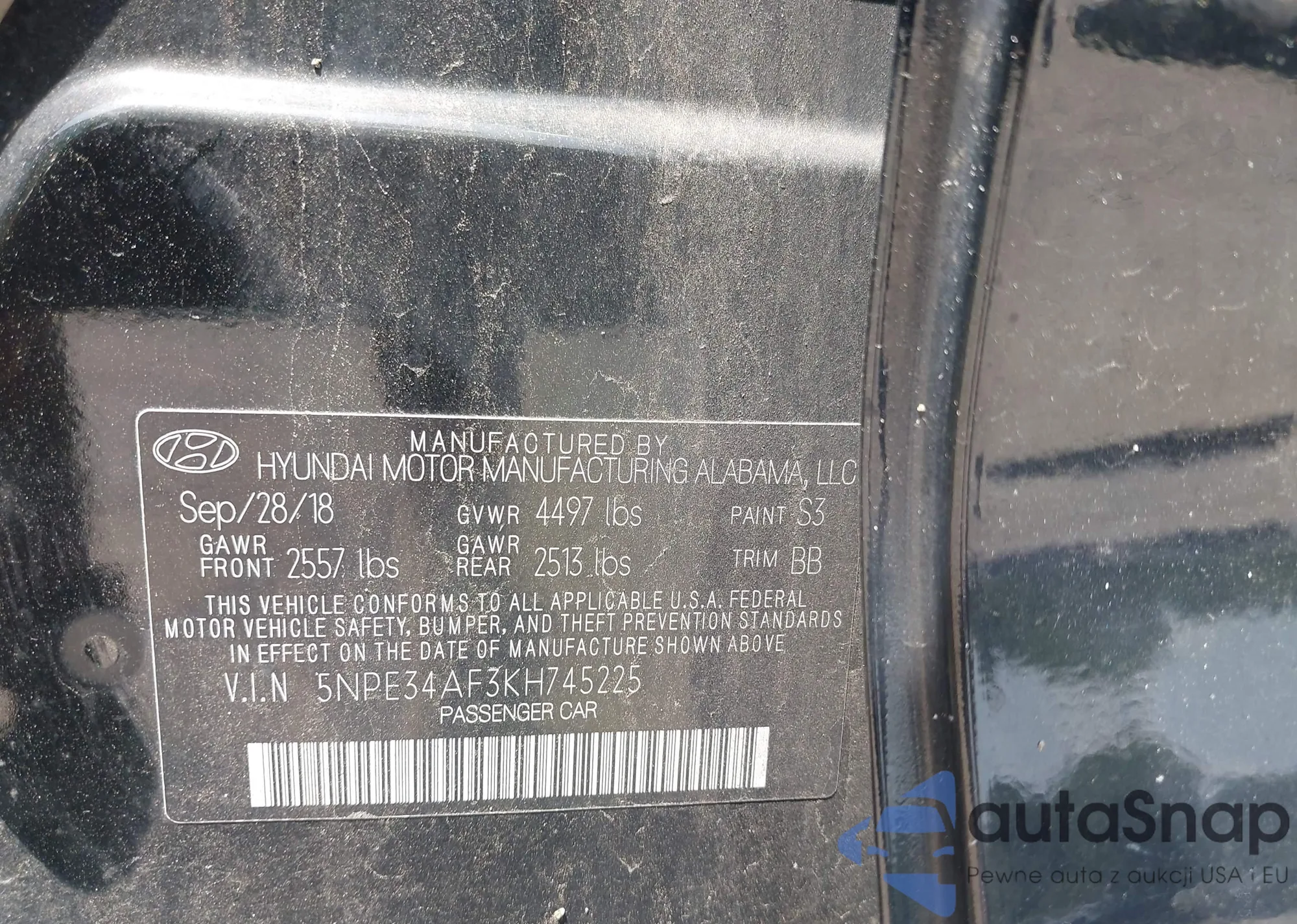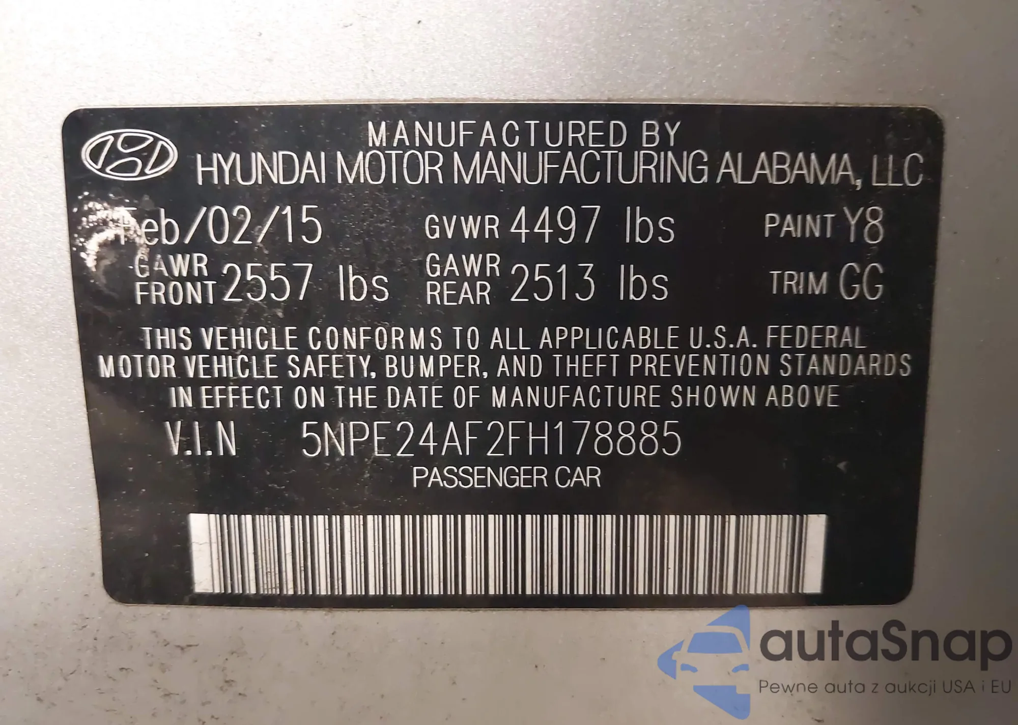 LOT: 42560301 VIN: KMHGH4JF0BU029409