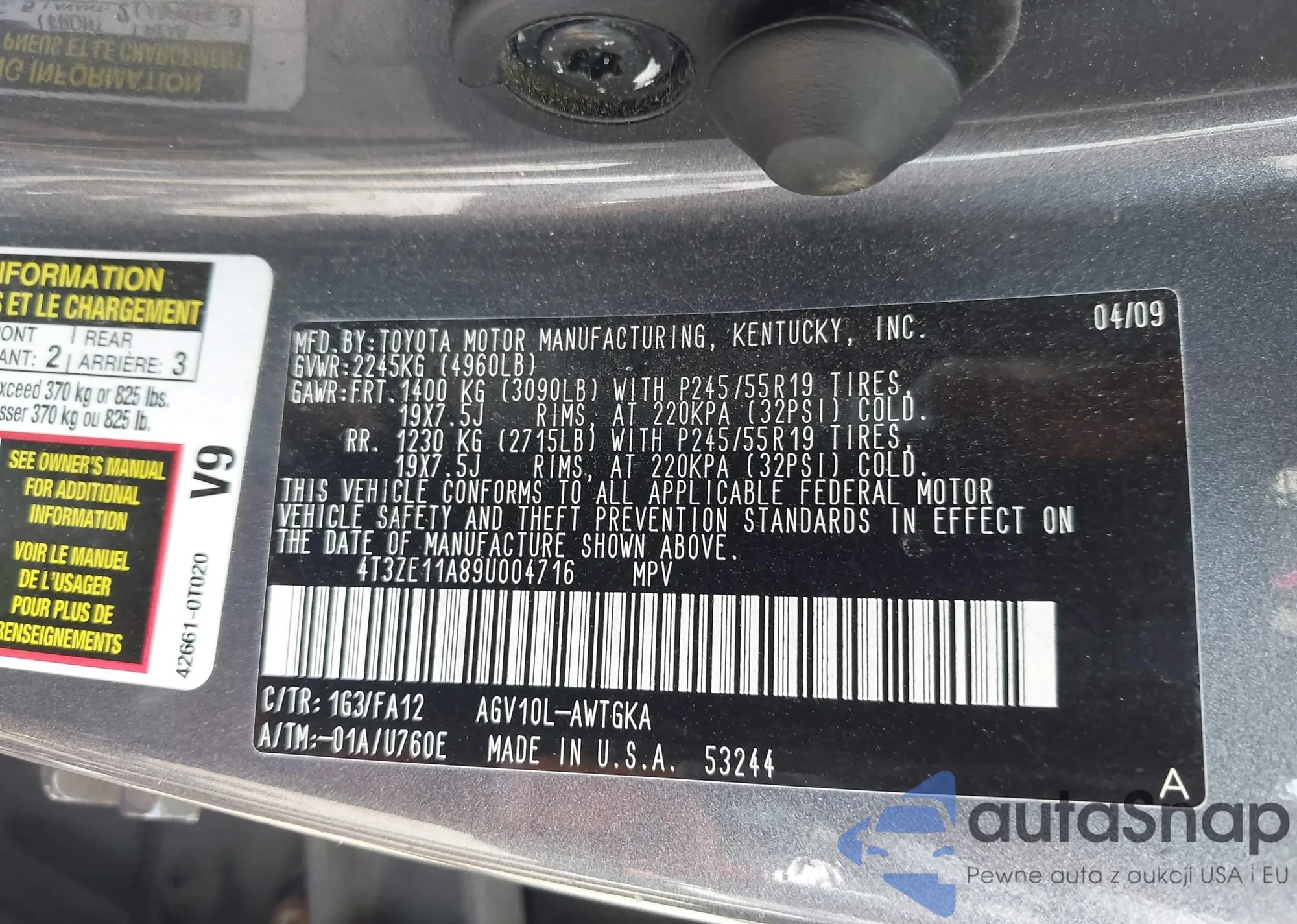 • VIN 4T3ZE11A89U004716