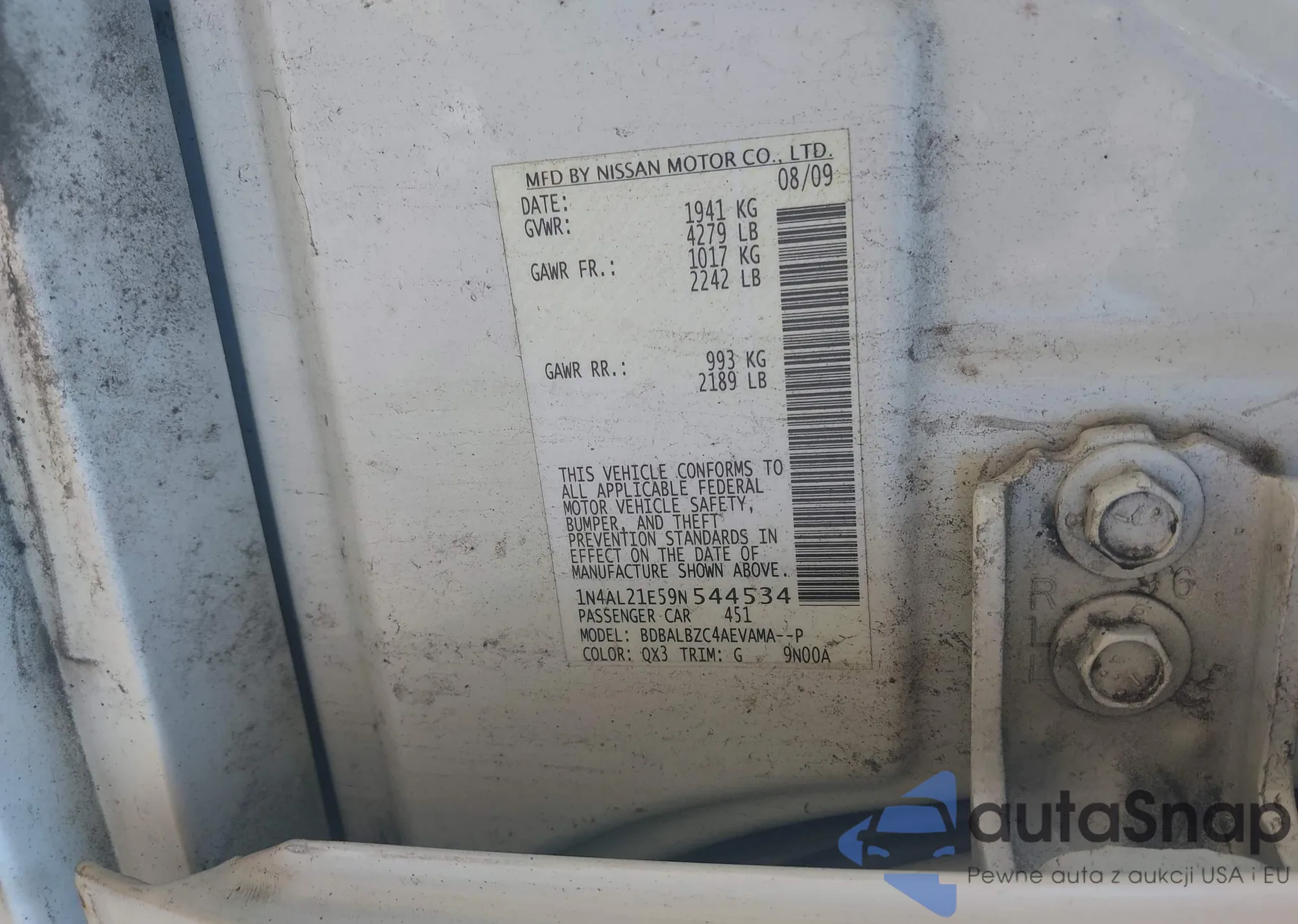 LOT: 42592204 VIN: 1N4AL21E59N544534