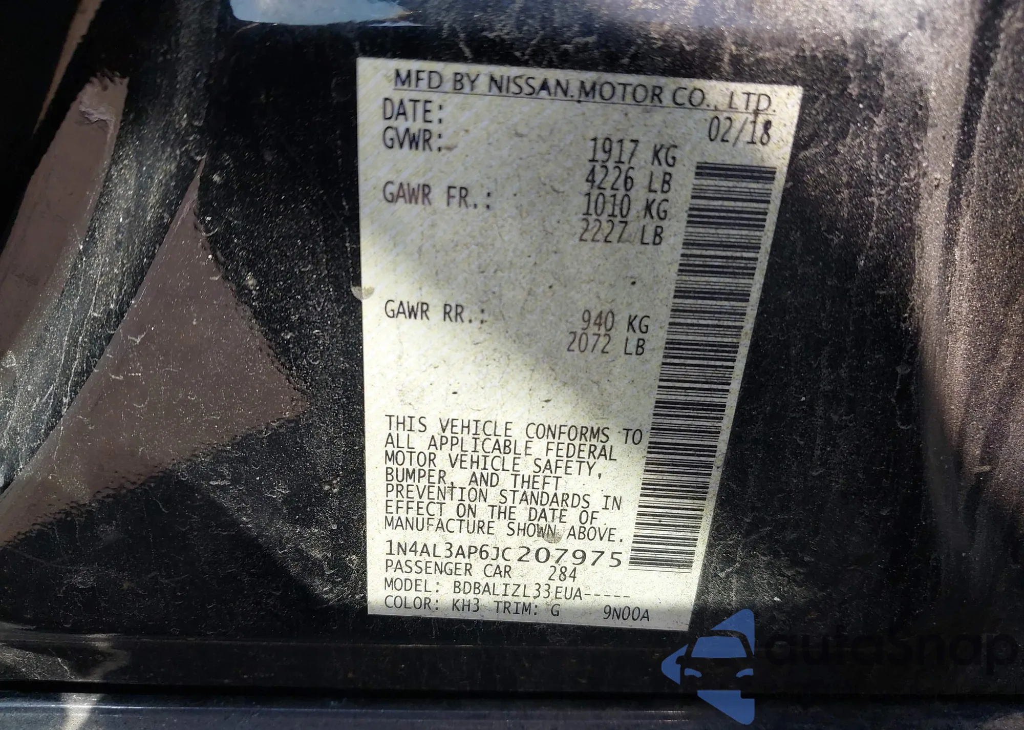 LOT: 42384487 VIN: 1N4AL3AP6JC207975