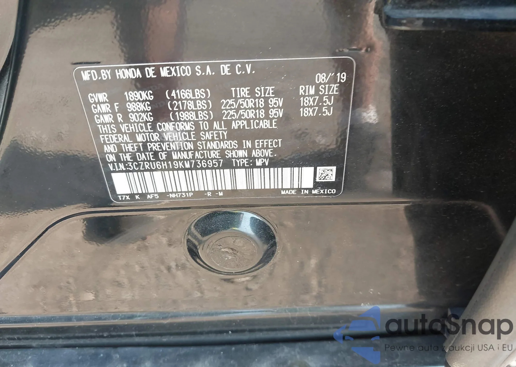 • VIN 3CZRU6H19KM736957
