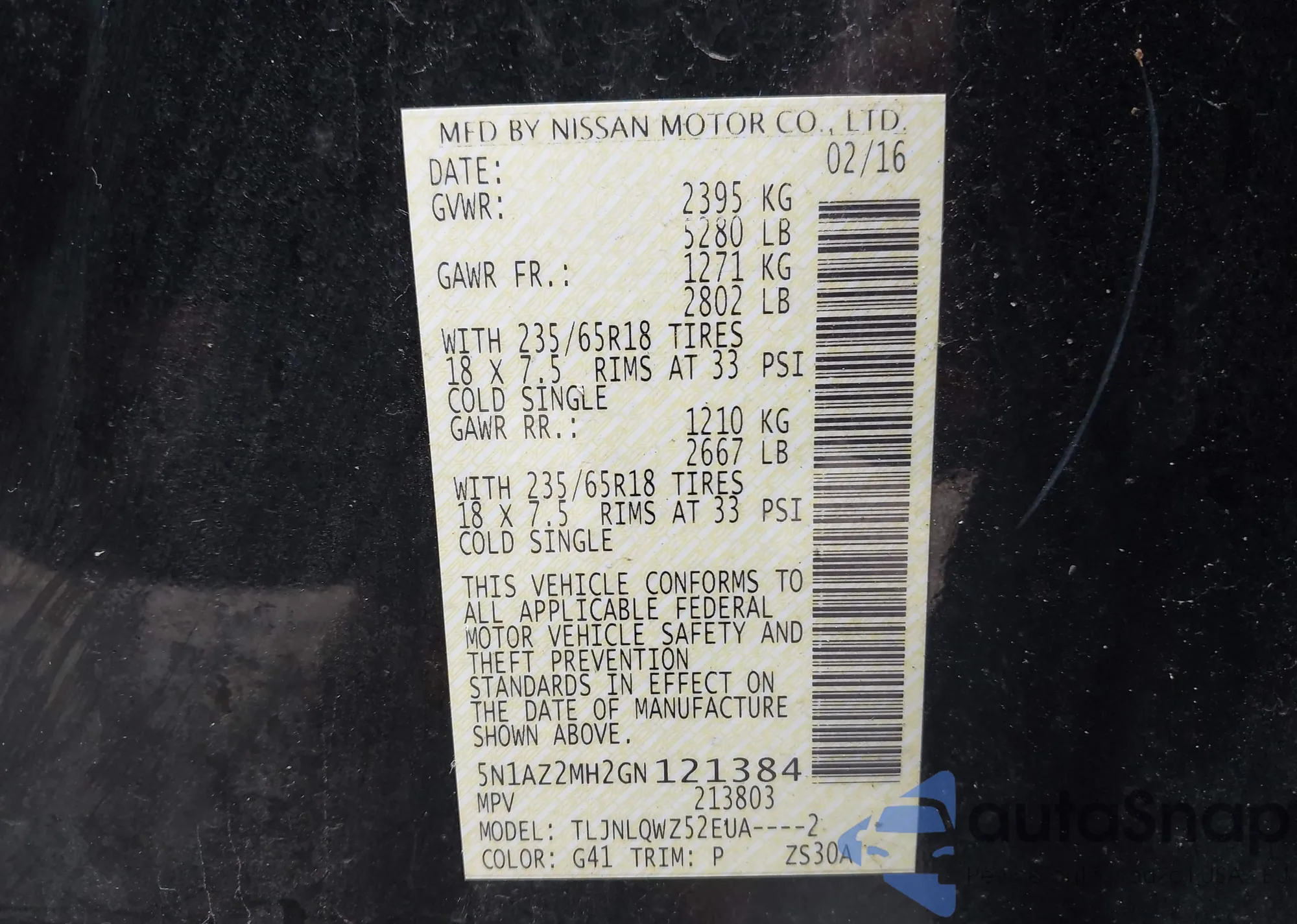 • VIN 5N1AZ2MH2GN121384