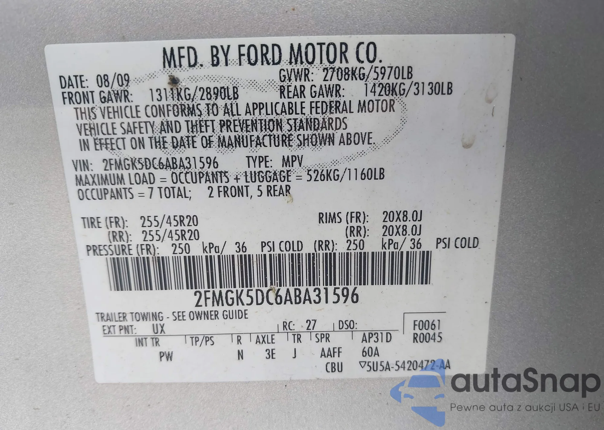 • VIN 2FMGK5DC6ABA31596