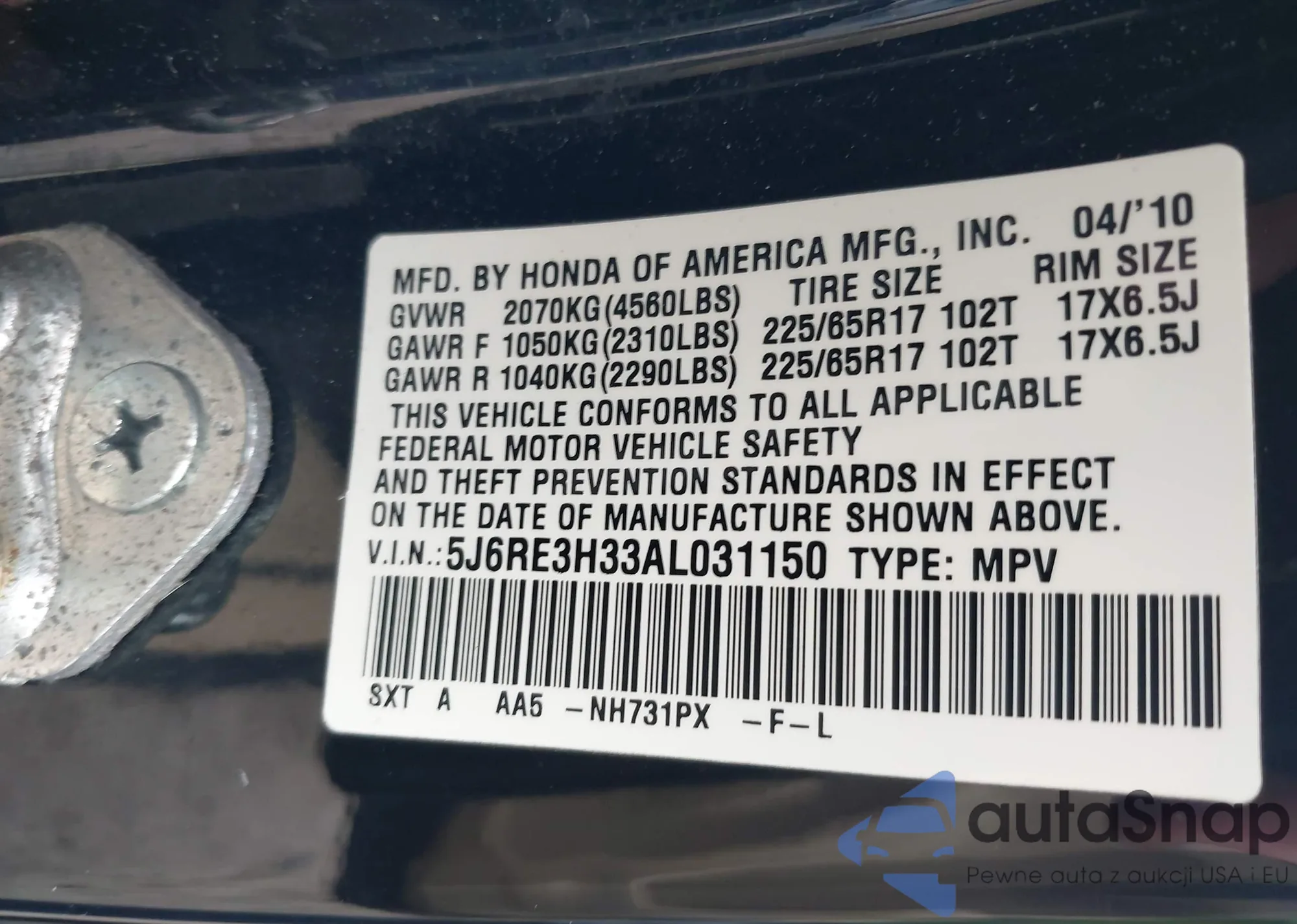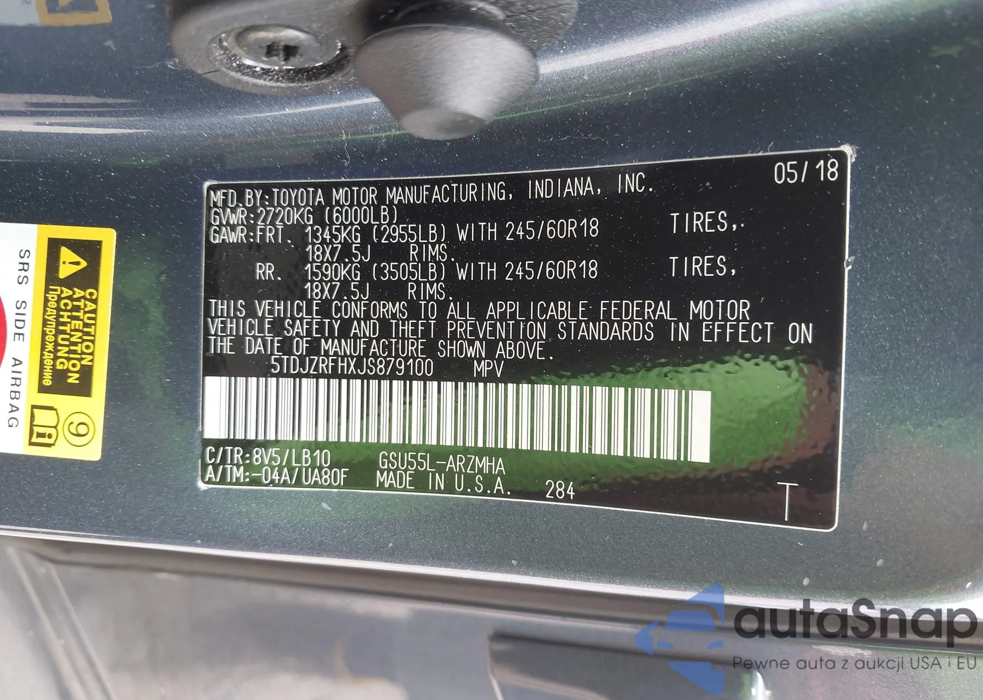 • VIN 5TDJZRFHXJS879100