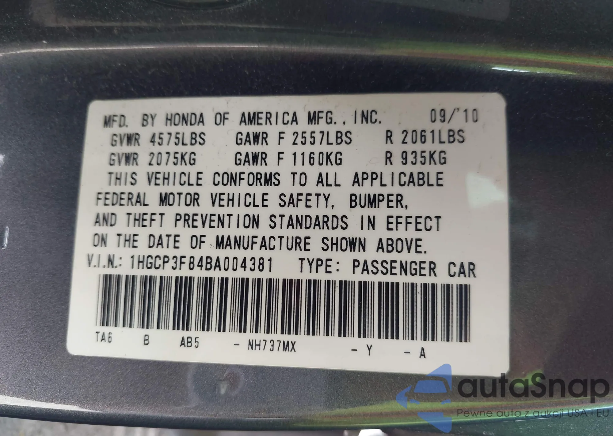 • VIN WAUDNAF43LA045383