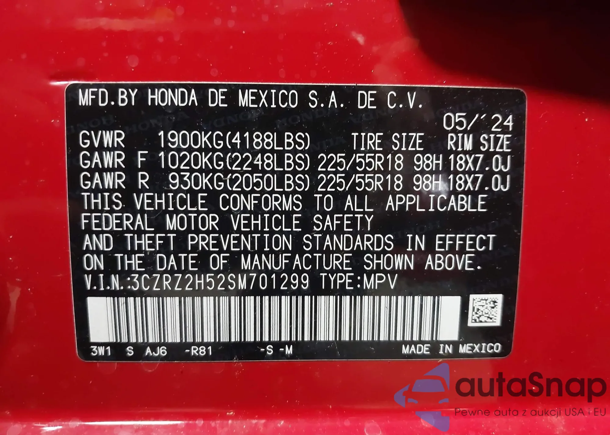 • VIN 3CZRZ2H52SM701299