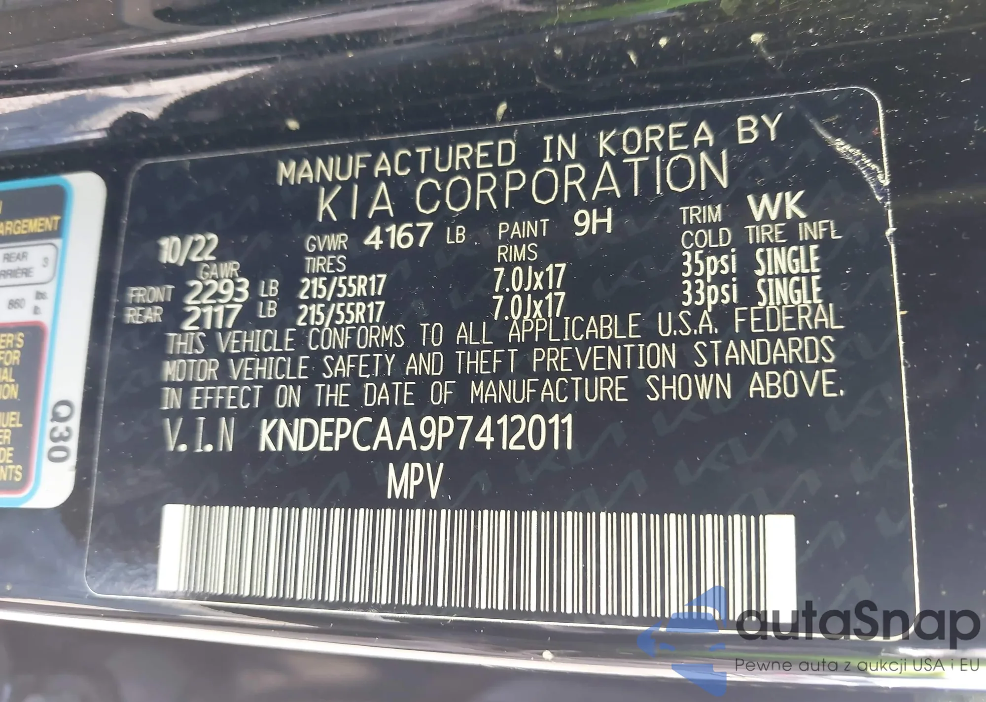 • VIN KNDEPCAA9P7412011