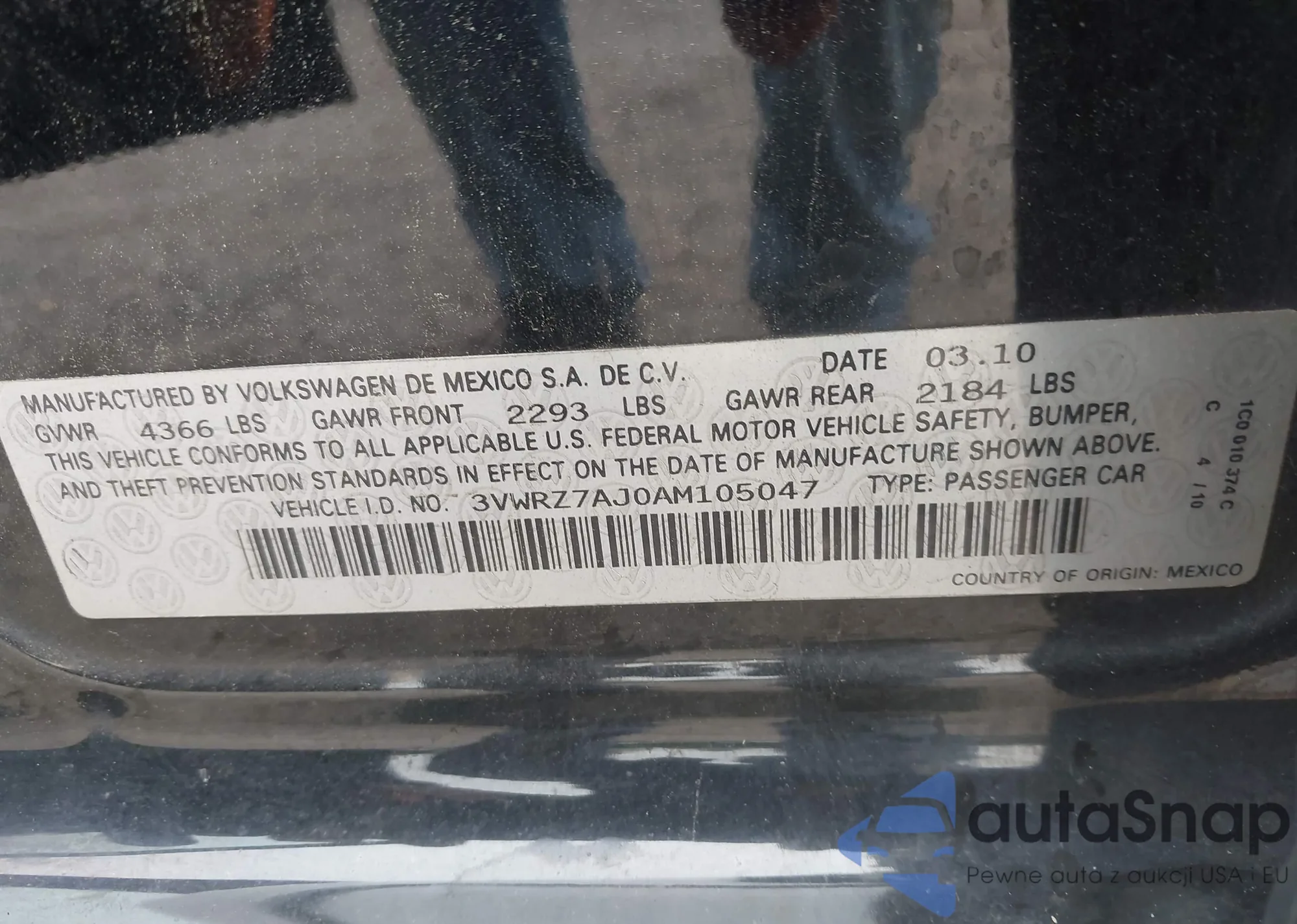 • VIN 3VWRZ7AJ0AM105047