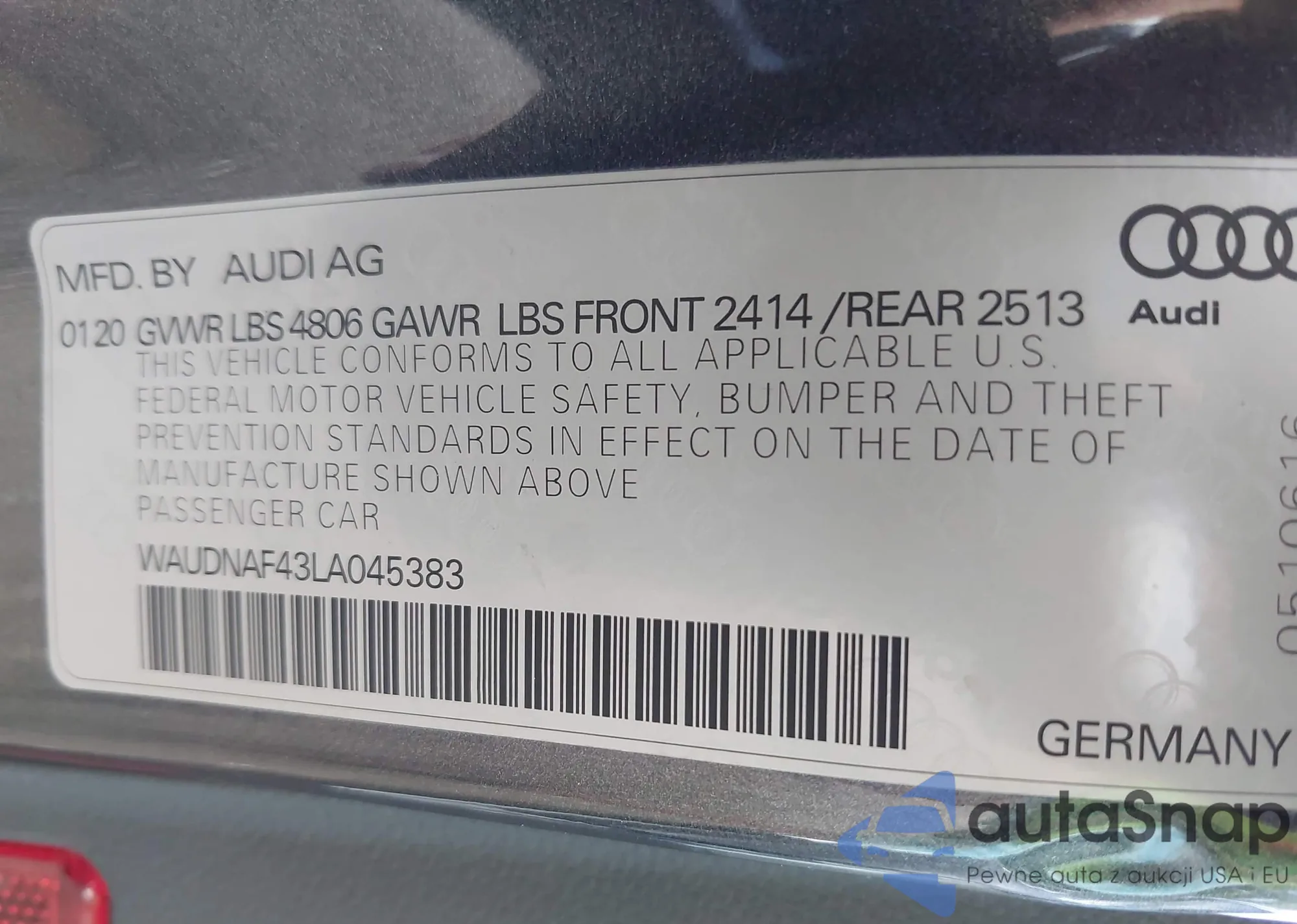 LOT: 42793559 VIN: WAUDNAF43LA045383