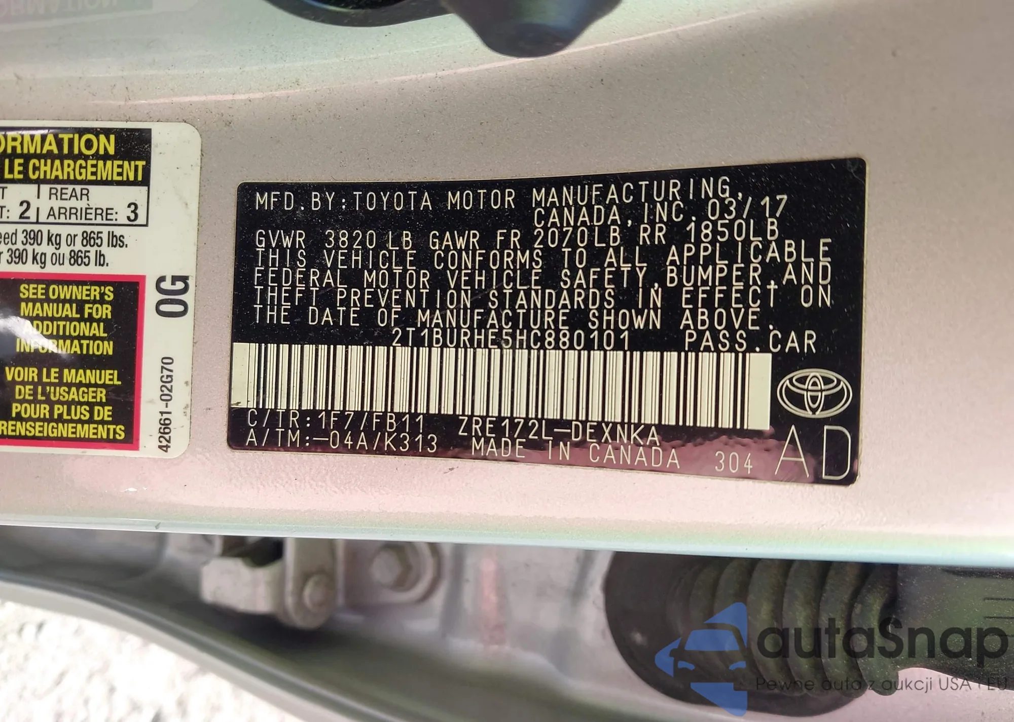 LOT: 42586567 VIN: 2T1BURHE5HC880101