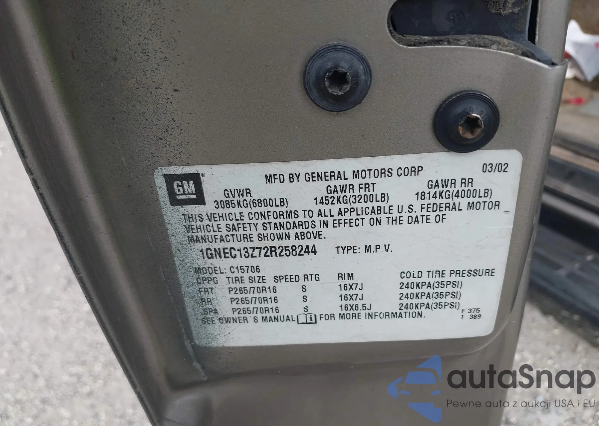 LOT: 42639069 VIN: 1GNEC13Z72R258244