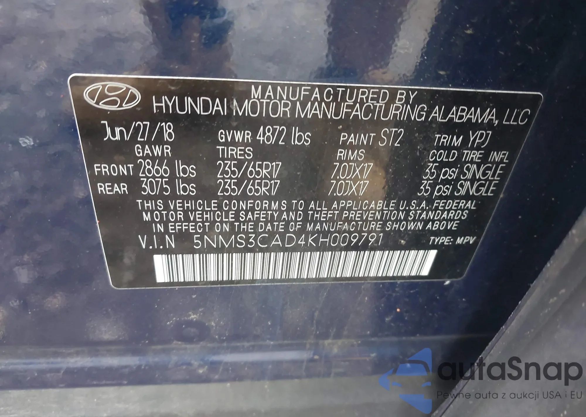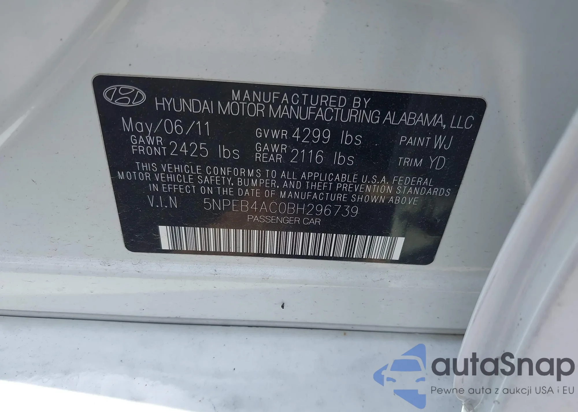 • VIN 5NPEB4AC0BH296739