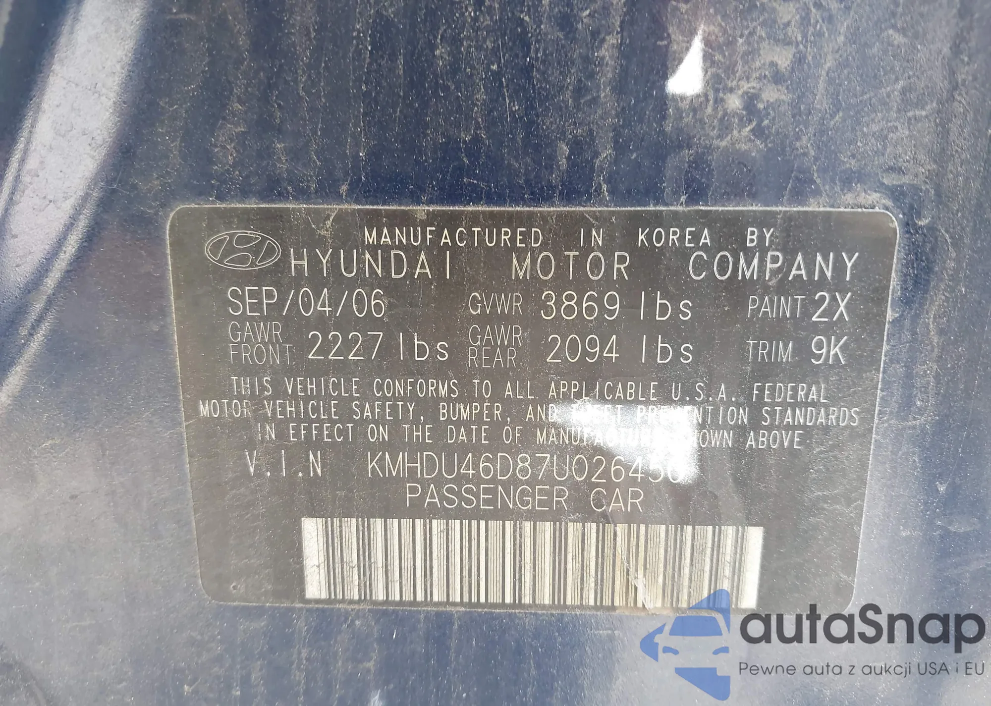 • VIN KMHCU4AE3DU580650