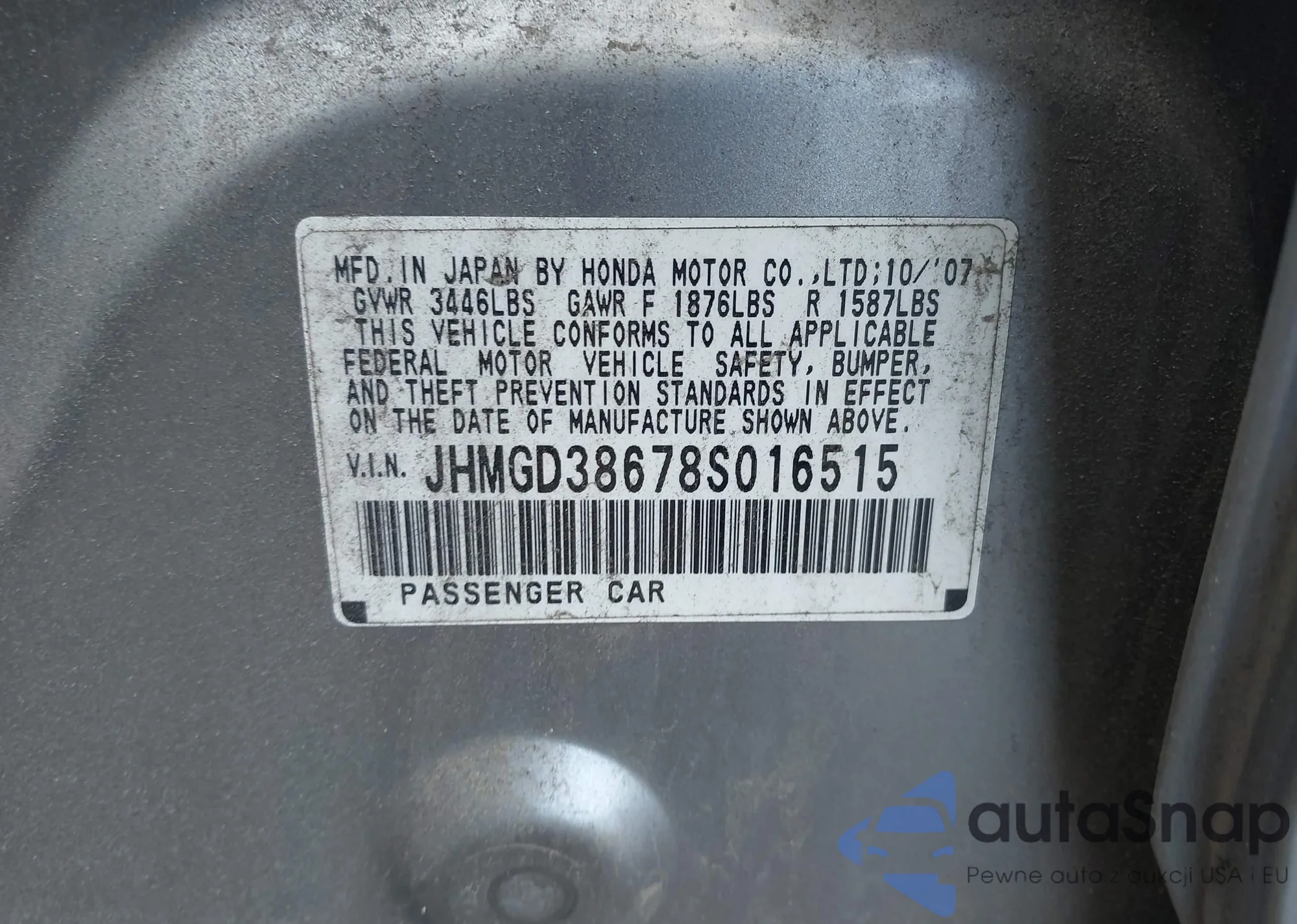 LOT: 42708024 VIN: JHMGD38678S016515