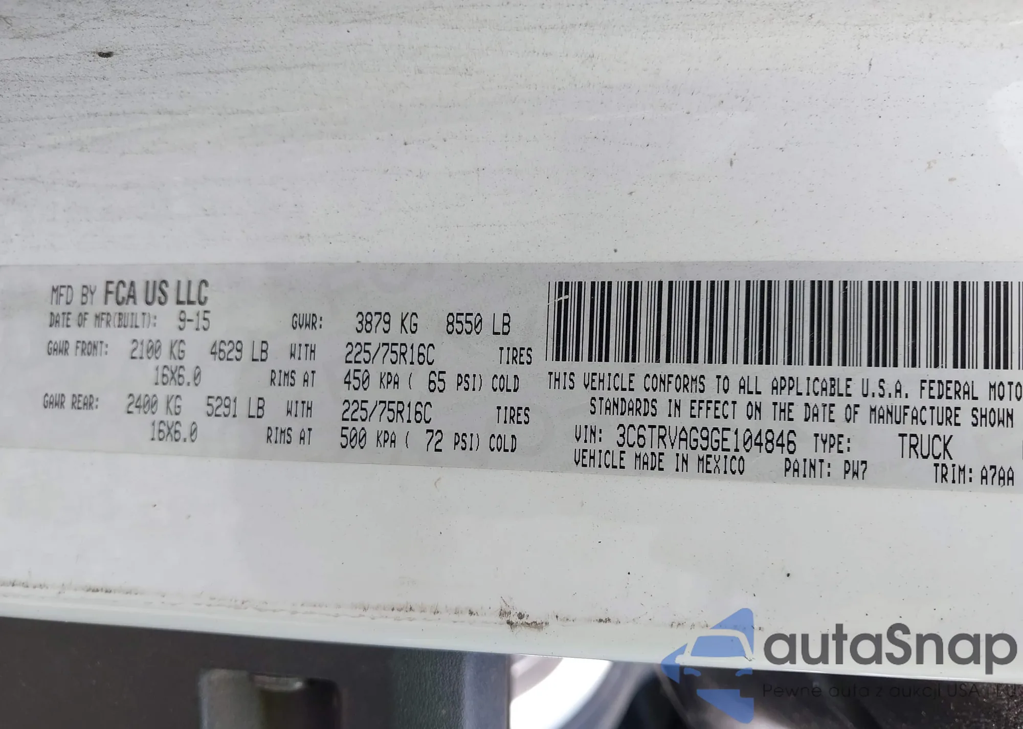 • VIN 3C6TRVAG9GE104846