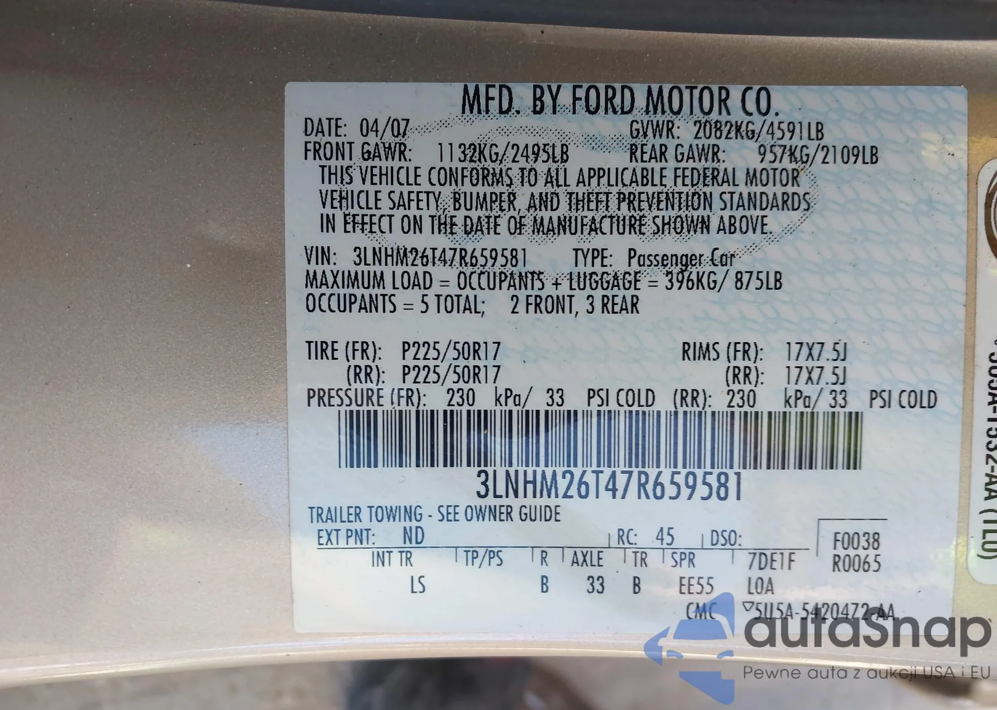 • VIN 3LNHM26T47R659581