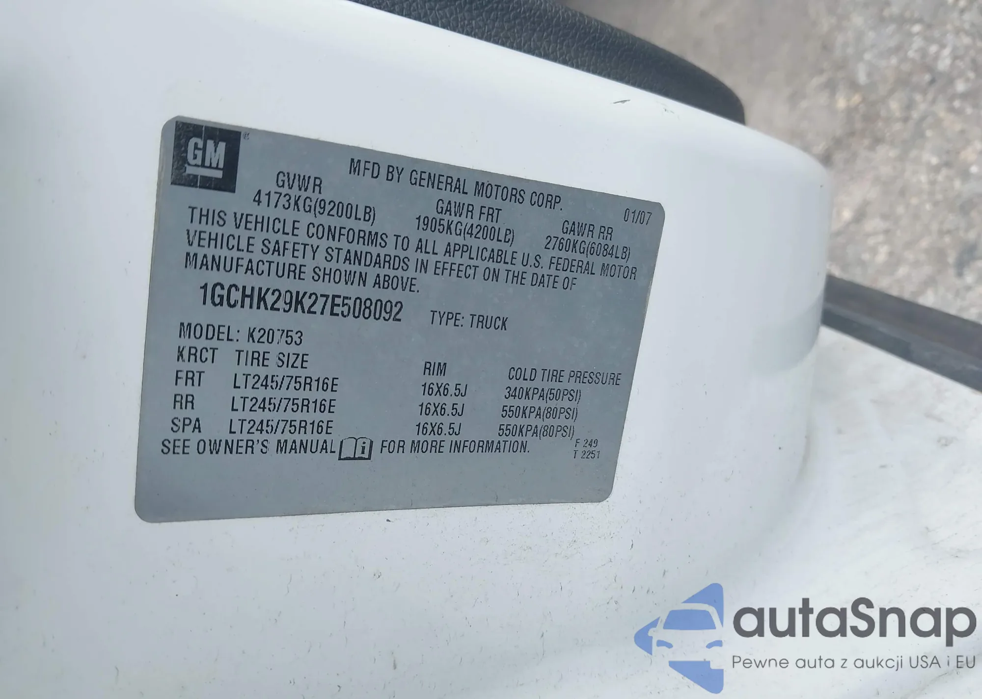 • VIN 1GCHK29K27E508092