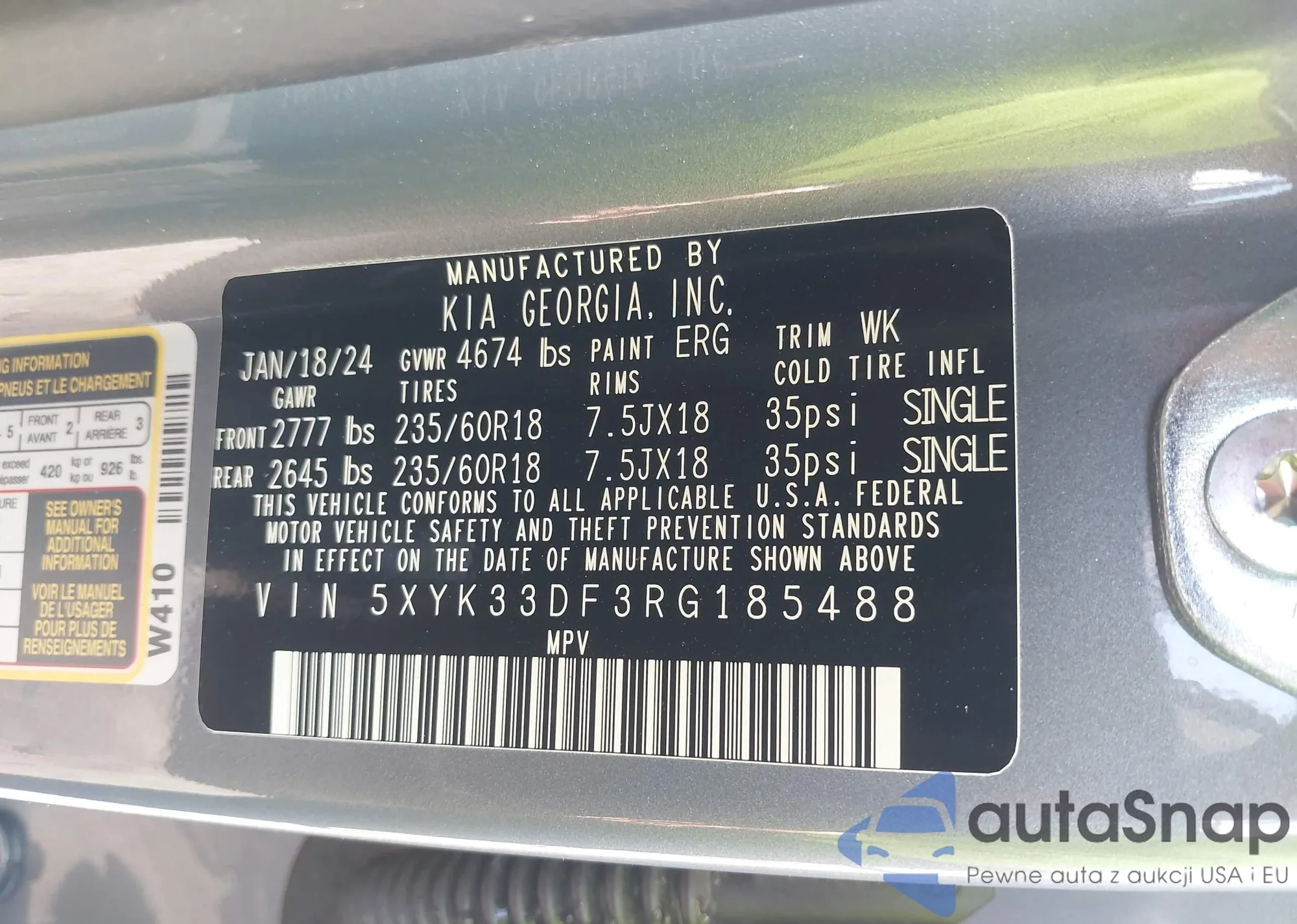 LOT: 42345457 VIN: 5XYK33DF3RG185488