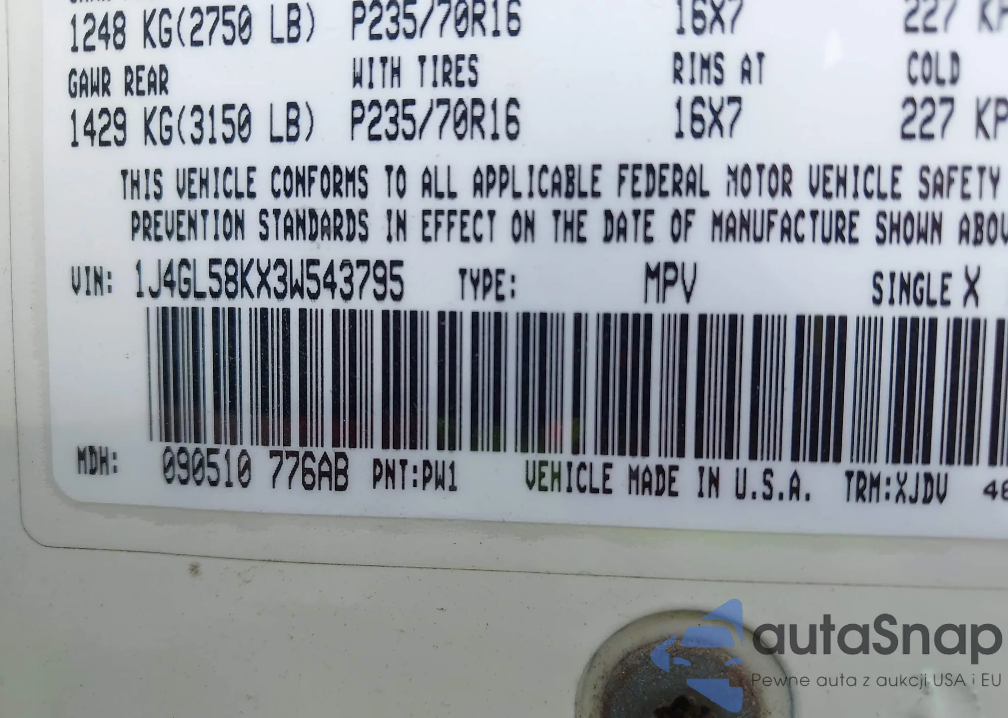 • VIN 1J4GL58KX3W543795