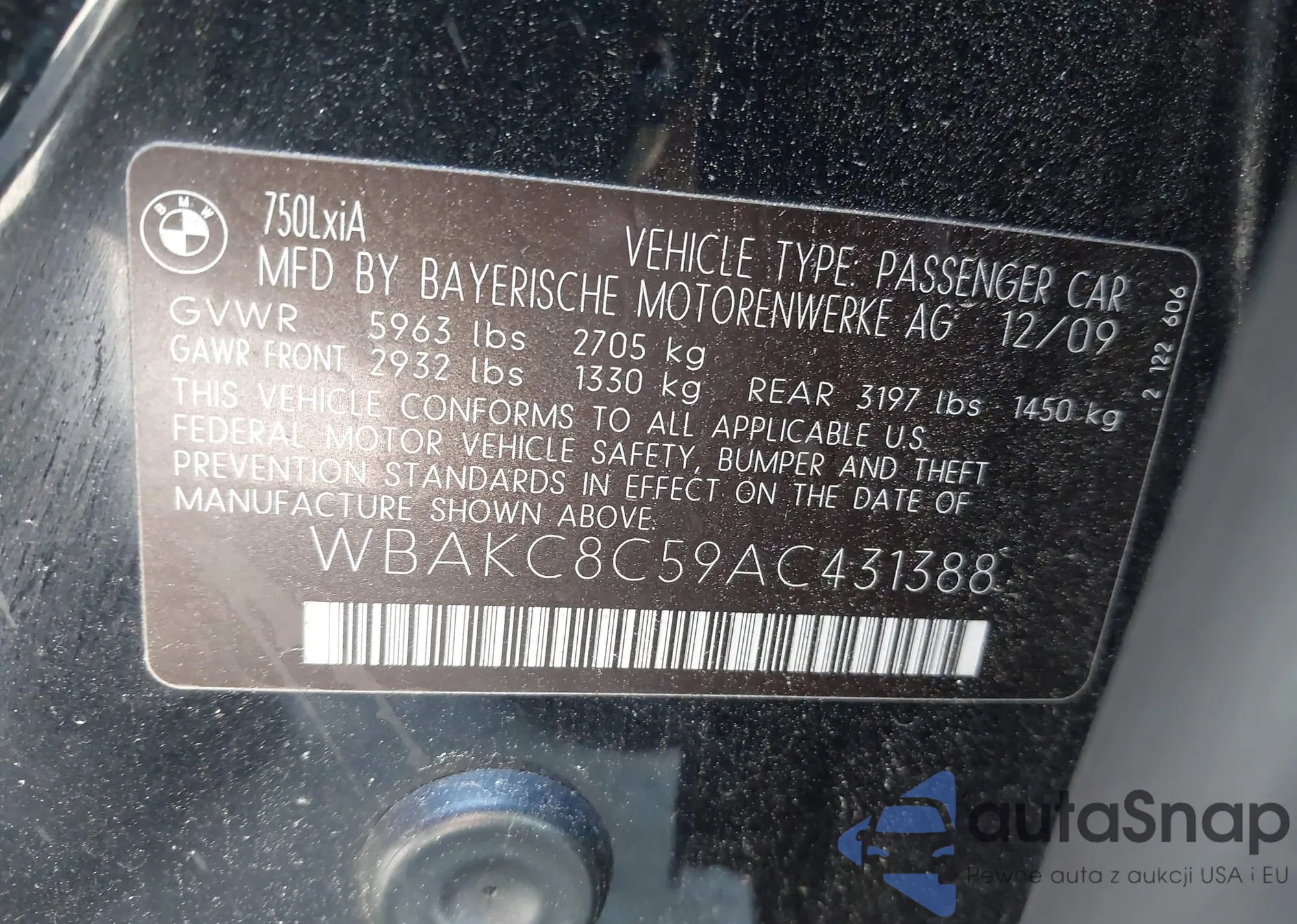 • VIN WBAKC8C59AC431388