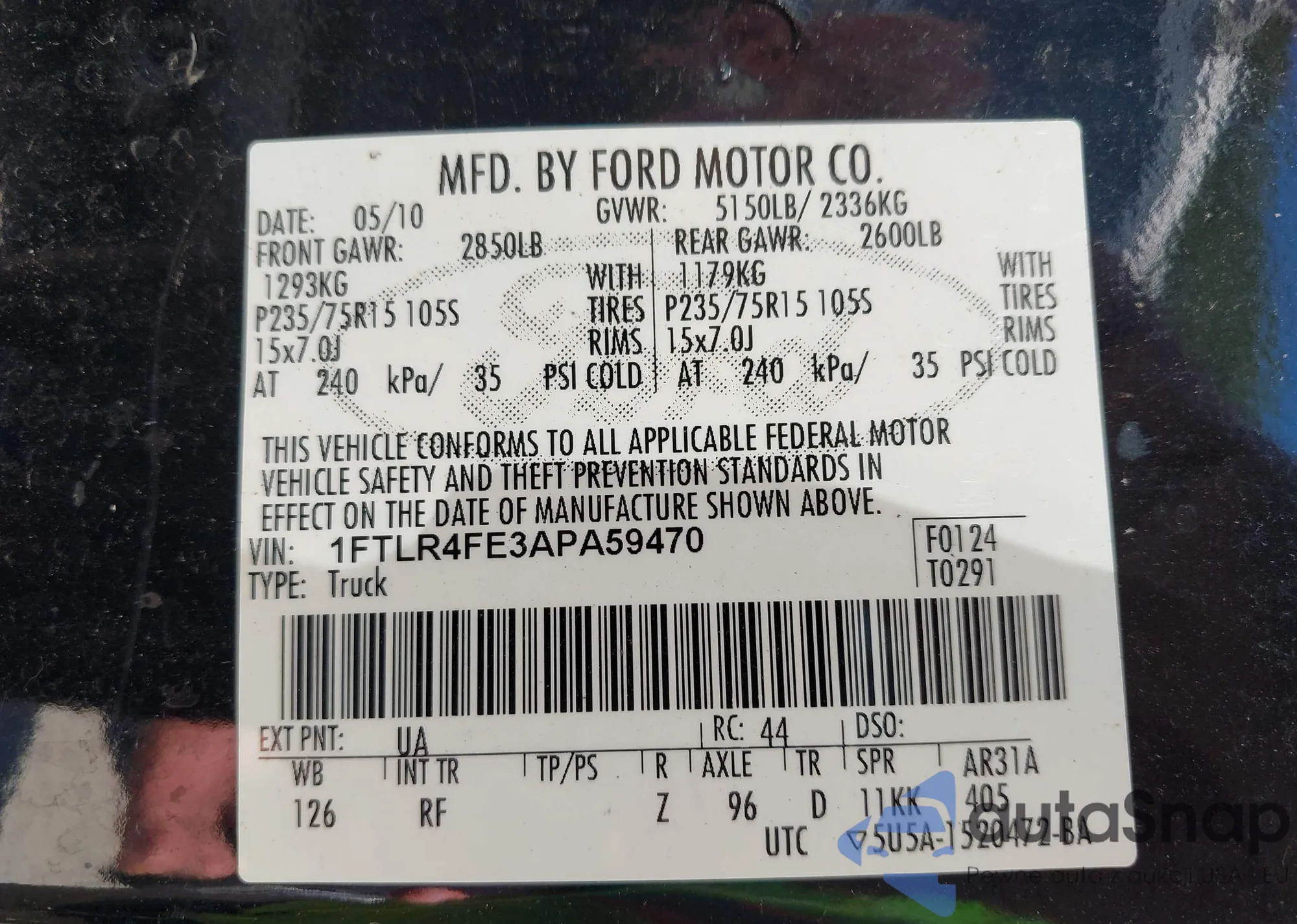 • VIN 1FTLR4FE3APA59470