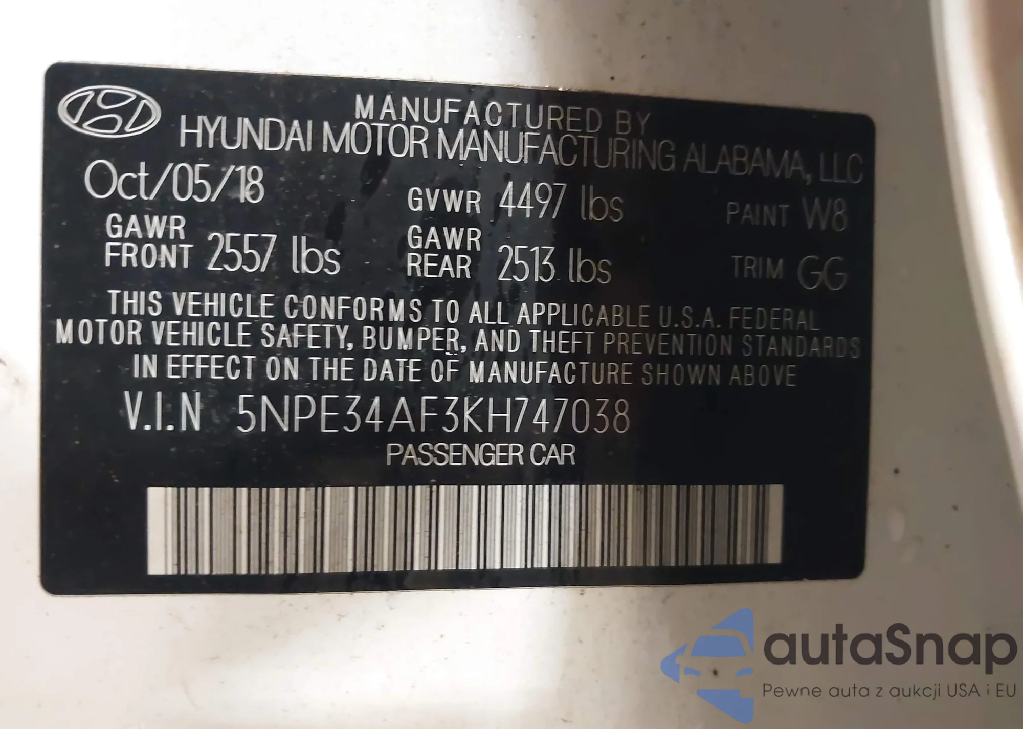 • VIN 5NPE34AF3KH747038