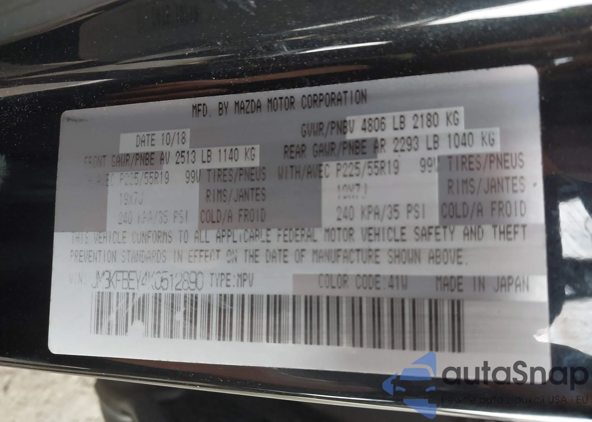 LOT: 42211477 VIN: JM3KFBEY4K0512890
